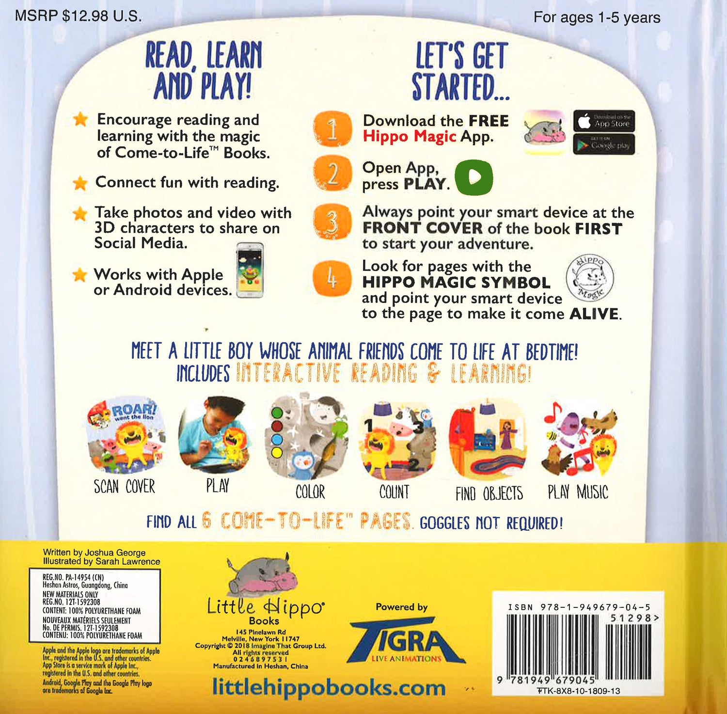 Meet a little boy whose animal friends come to life at bedtime! Children will love joining in with the animal noise rhyming fun, coloring the animals, finding hidden toys and more!