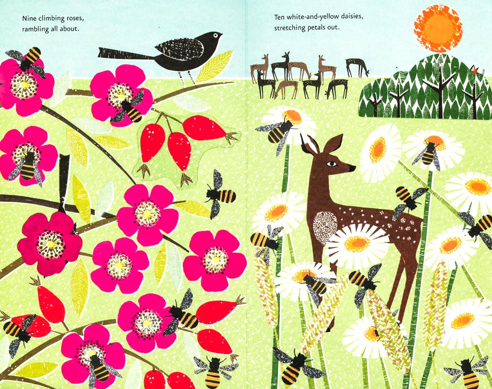 In a spring garden the flowers are slowly coming out as the weather warms up. As the flowers come, so too do bees and other forms of life. This follow on from Little Tree is a simple counting book with a difference. The text will count emerging spring flowers from one to ten, but under petals and on the reverse sides of leaves, the same number of bees will also appear. As the garden fills up with flowers so it fills up with life. Each page of the book will have lift-the flaps that correspond with the shapes and layers of the different flowers. Readers will be able to open the petals of a sunflower, turn an vine of dog rose buds into an archway of fully bloomed flowers.