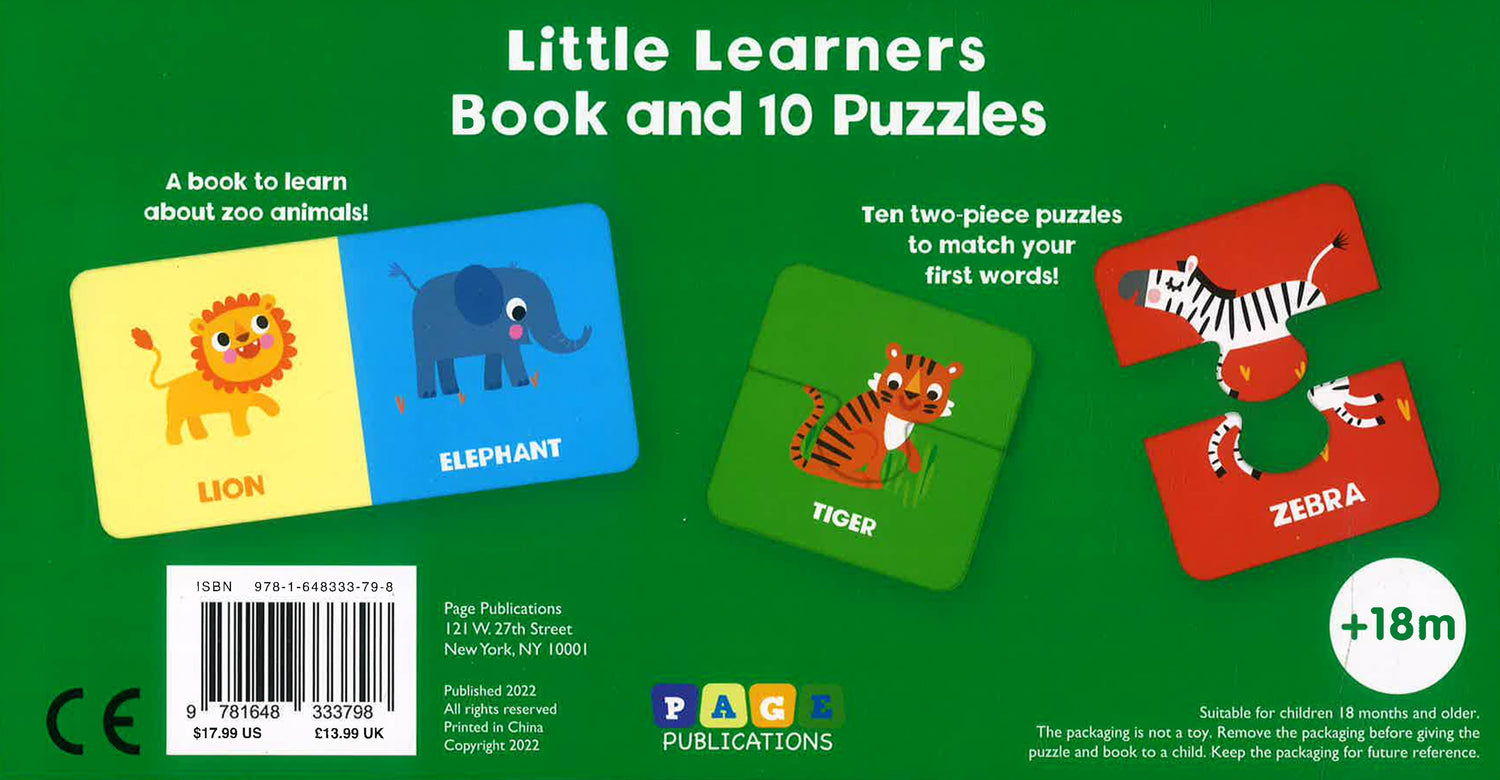 Little Learners Book and 10 Puzzles Set: Zoo Animals, A book to learn about zoo animals. Ten two-piece puzzles to match your first words.