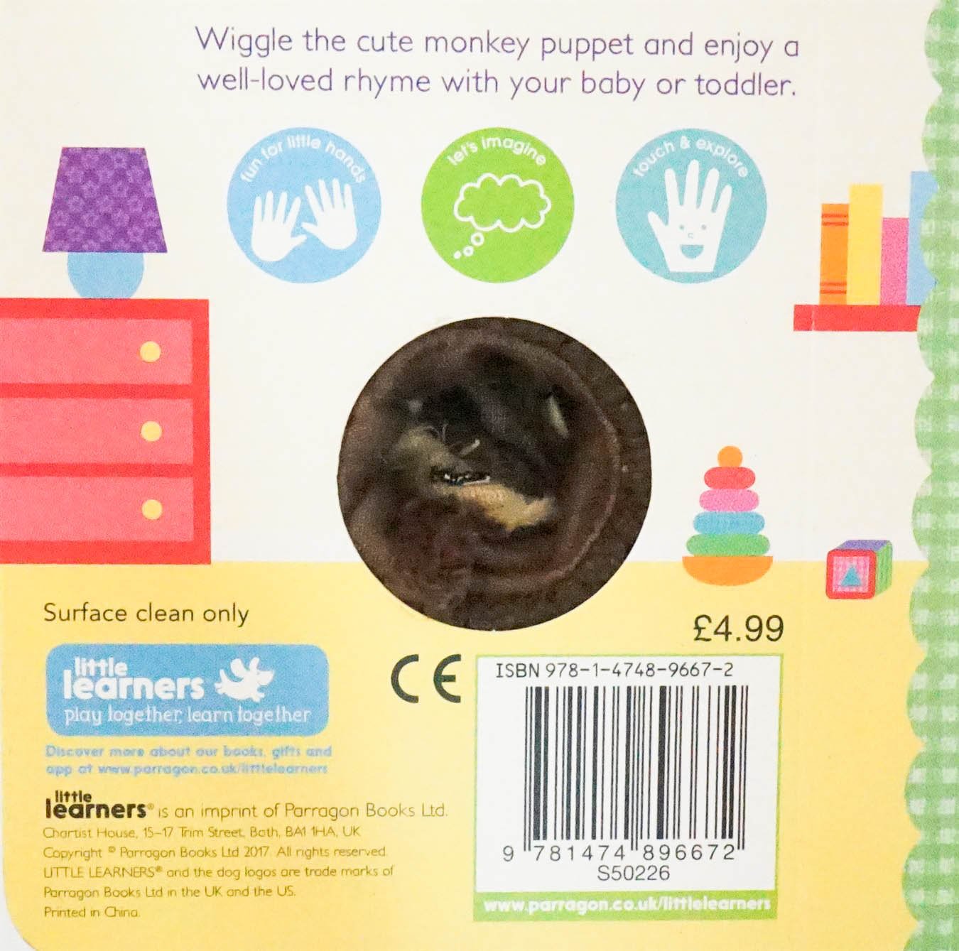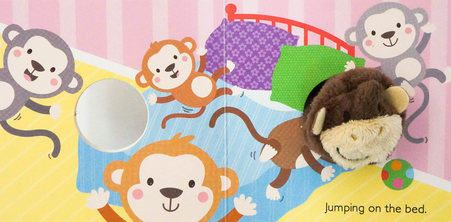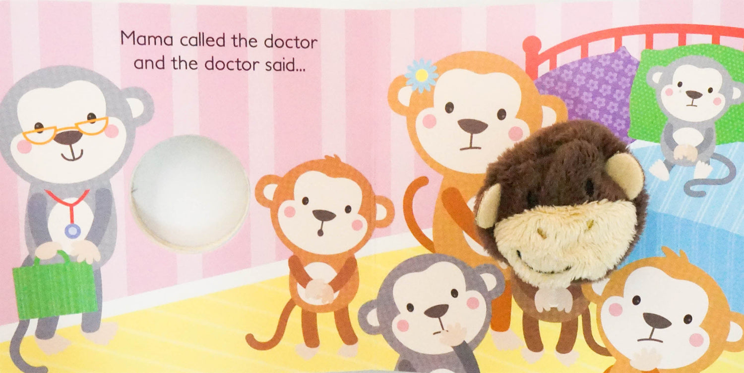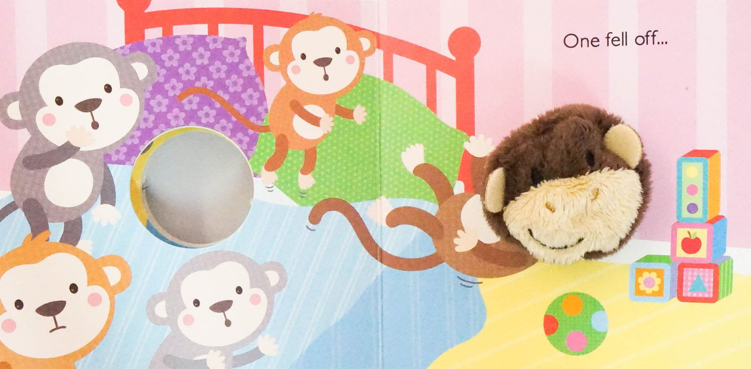 Your little one will adore this cute board book of "Five Little Monkeys" with a plush monkey puppet attached.