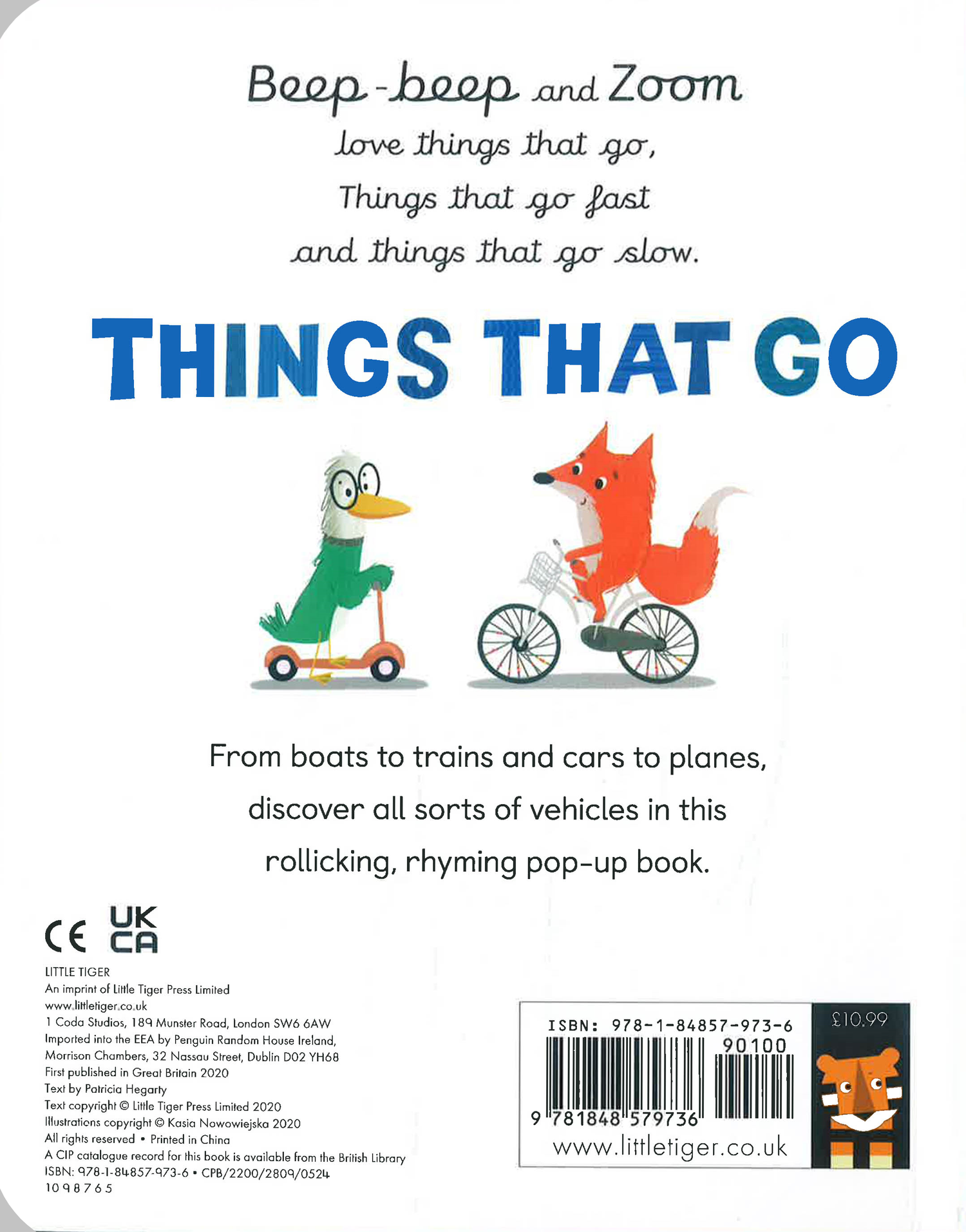 Beep-beep and Zoom love things that go, Things that go fast and things that go slow. From boats to trains and cars to planes, discover all sorts of vehicles in this rollicking, rhyming pop-up book.