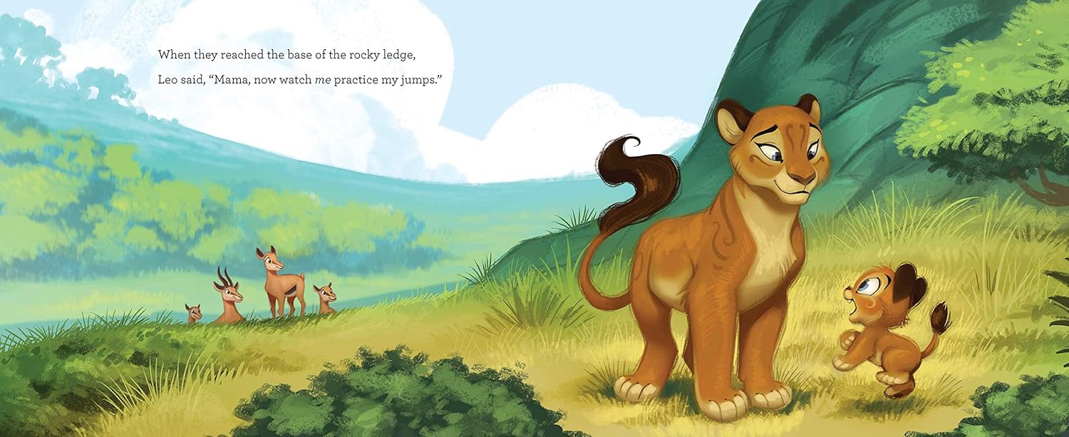 As Little Leo and his mother walk along the riverbank in the African grasslands, he watches all the animals playing and leaping around and gets an idea...what if he jumped to the top of that mountain in the distance?