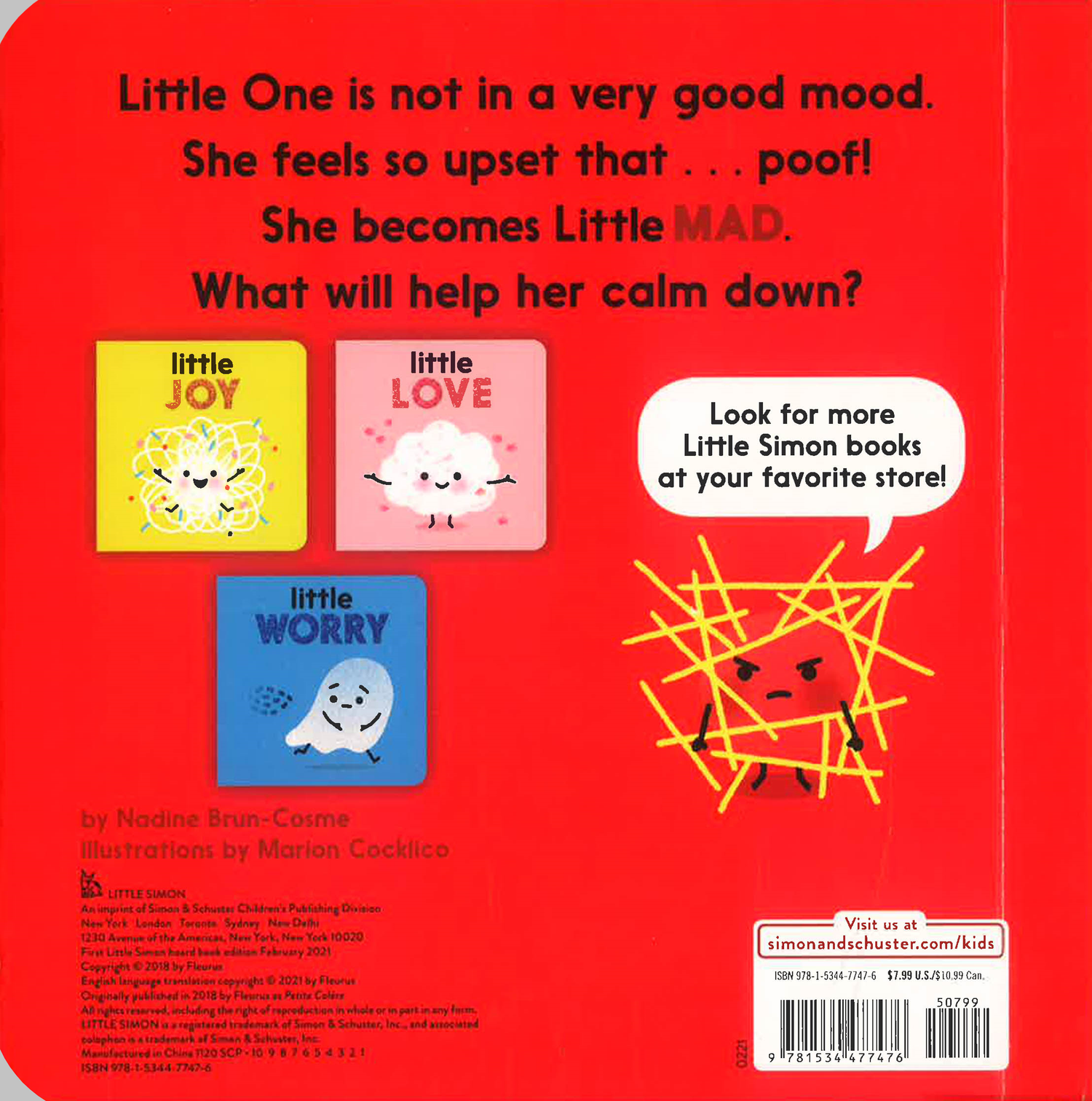 In this reassuring board book about first feelings, little ones will be able to relate and learn from Little Mad as she learns how to calm down after getting upset. The perfect book for parents and little ones to share, this story proves that sometimes, when you're feeling mad, all you need is a friend to be by your side.