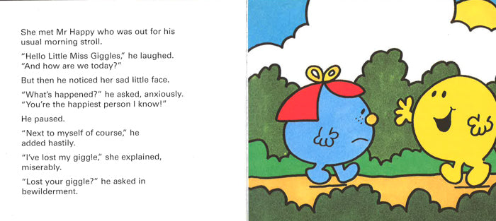 Another delightful story from the world of Little Miss. Little Miss Giggles can't stop giggling until the momentous day that she finally loses her giggle. Can the other Mr Men help her to find it? The Mr Men and Little Miss have been delighting children for generations with their charming and funny antics. Bold illustrations and funny stories make Mr Men and Little Miss the perfect story time experience for children aged two up. Have you met them all? It all started with a tickle. Roger Hargreaves' son Adam asked him what a tickle looked like. In response, Roger drew a small orange man with extraordinarily long arms that could reach anywhere and tickle anyone. Mr Tickle, the first of the Mr Men, was born. Mr Tickle was soon joined by Mr. Greedy, Mr. Happy, Mr. Nosey, Mr Sneeze and Mr Bump. When the first Mr Men books were published they became an instant hit. Roger went on to create many more Mr Men and Little Miss characters. What Roger really wanted was to make children laugh, which is probably why his own favourite character is Mr Silly.
