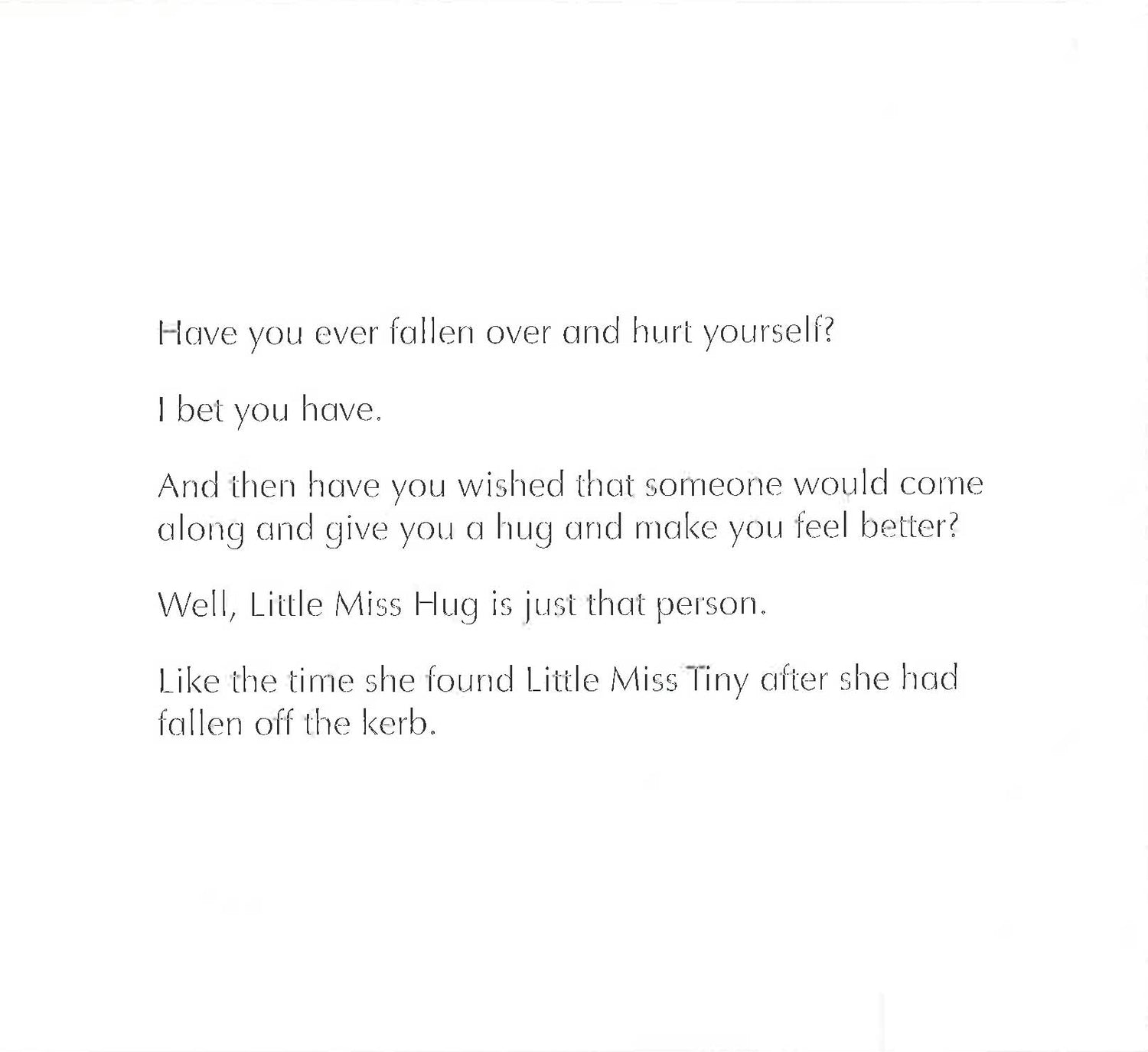 Little Miss Hug is an expert hugger. More than anything else, she loves to hug her friends and make them feel better. And there are times when she hugs just for the fun of it. After all, everyone needs a hug, don't they? The Mr Men and Little Miss have been delighting children for generations with their charming and funny antics. Bold illustrations and funny stories make Mr Men and Little Miss the perfect story time experience for children aged two up. Have you met them all?