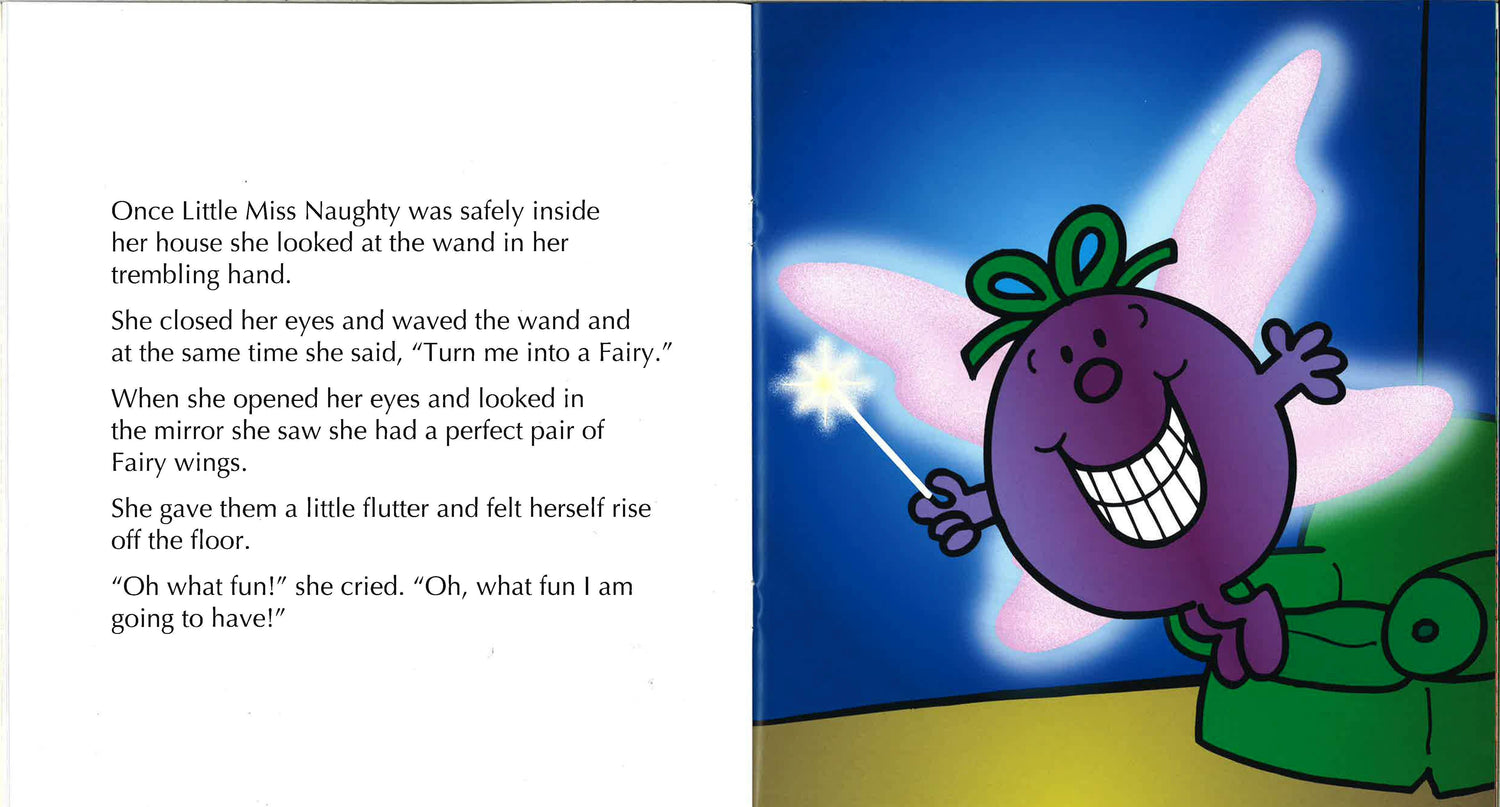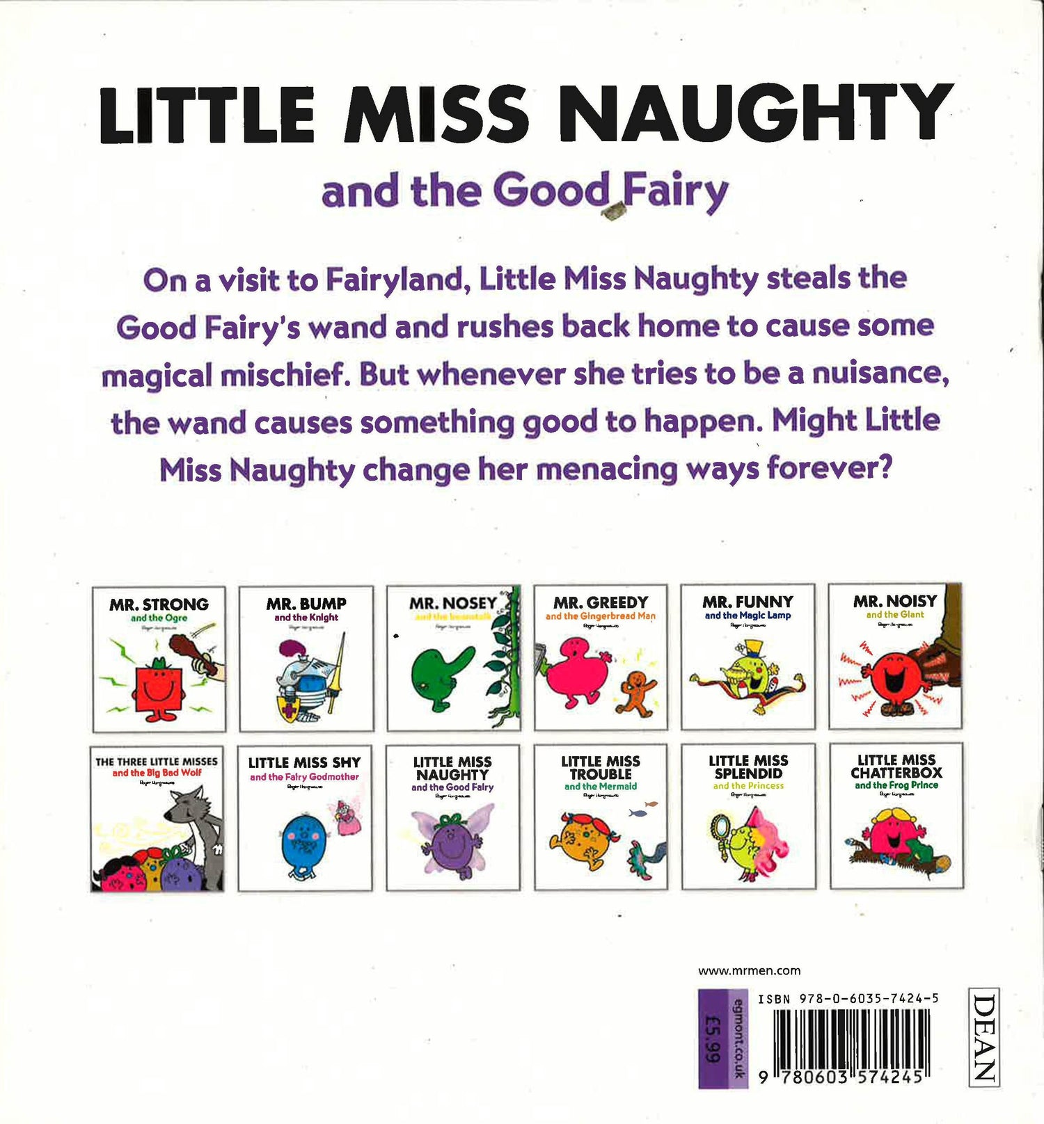 When Little Miss Naughty meets the Good Fairy she sure is in for a surprise. Little Miss Naughty always wants to be - well naughty. So she steals the Good Fairys wand and tries to ruin all the Mr Mens and Little Misses days. But she is surprised when everything keeps turning out for the best. And really what fun is that Collect all the fun titles available in this series.
