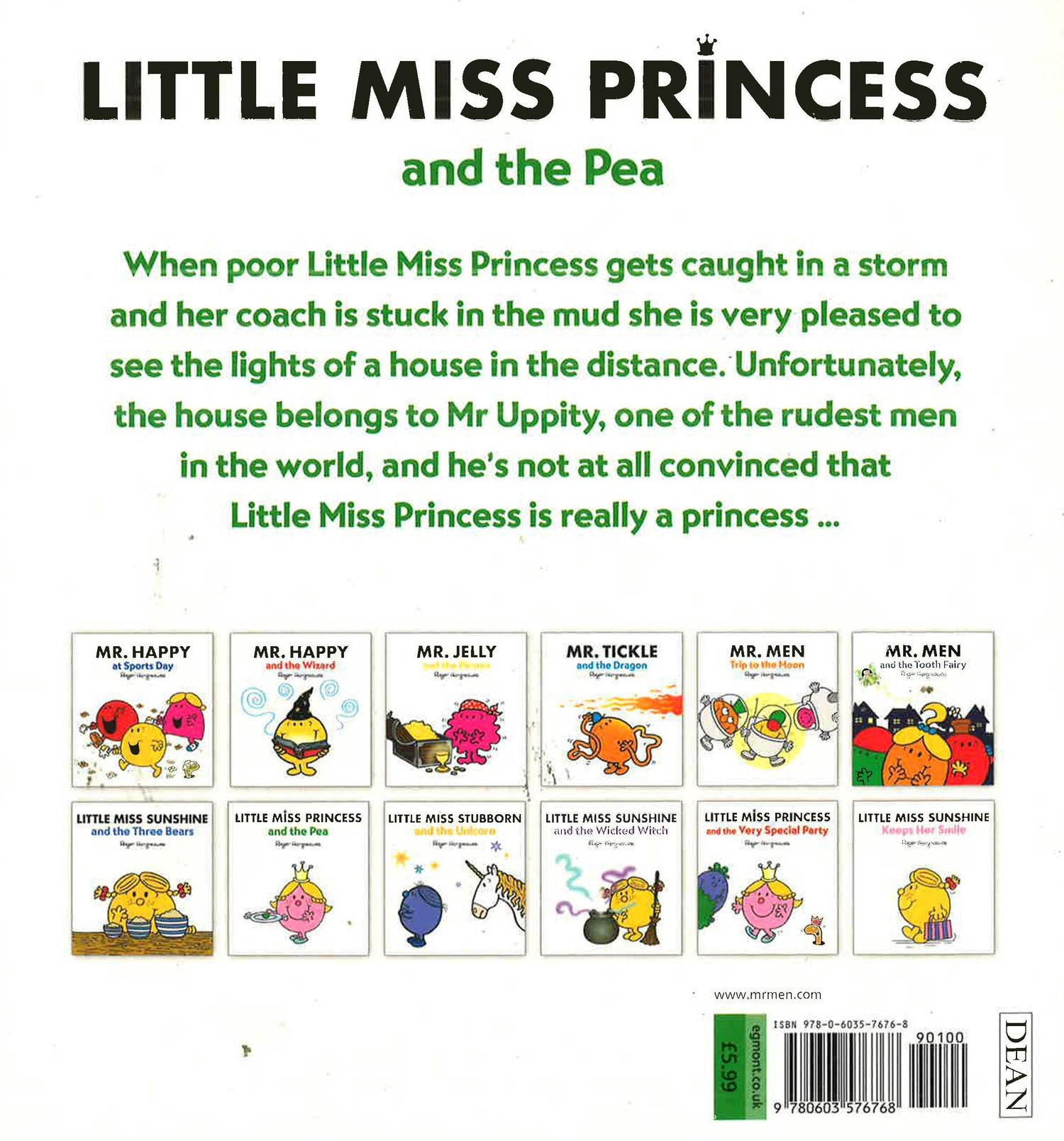 Little Miss Princess may be a princess but that doesn't mean that she is always as good as you might imagine a princess should be! At times she is a fussy eater - especially when it comes to peas! The other Little Miss and Mr Men try to help out but things get rather out of hand when Mr Messy arranges a royal pea fight party.