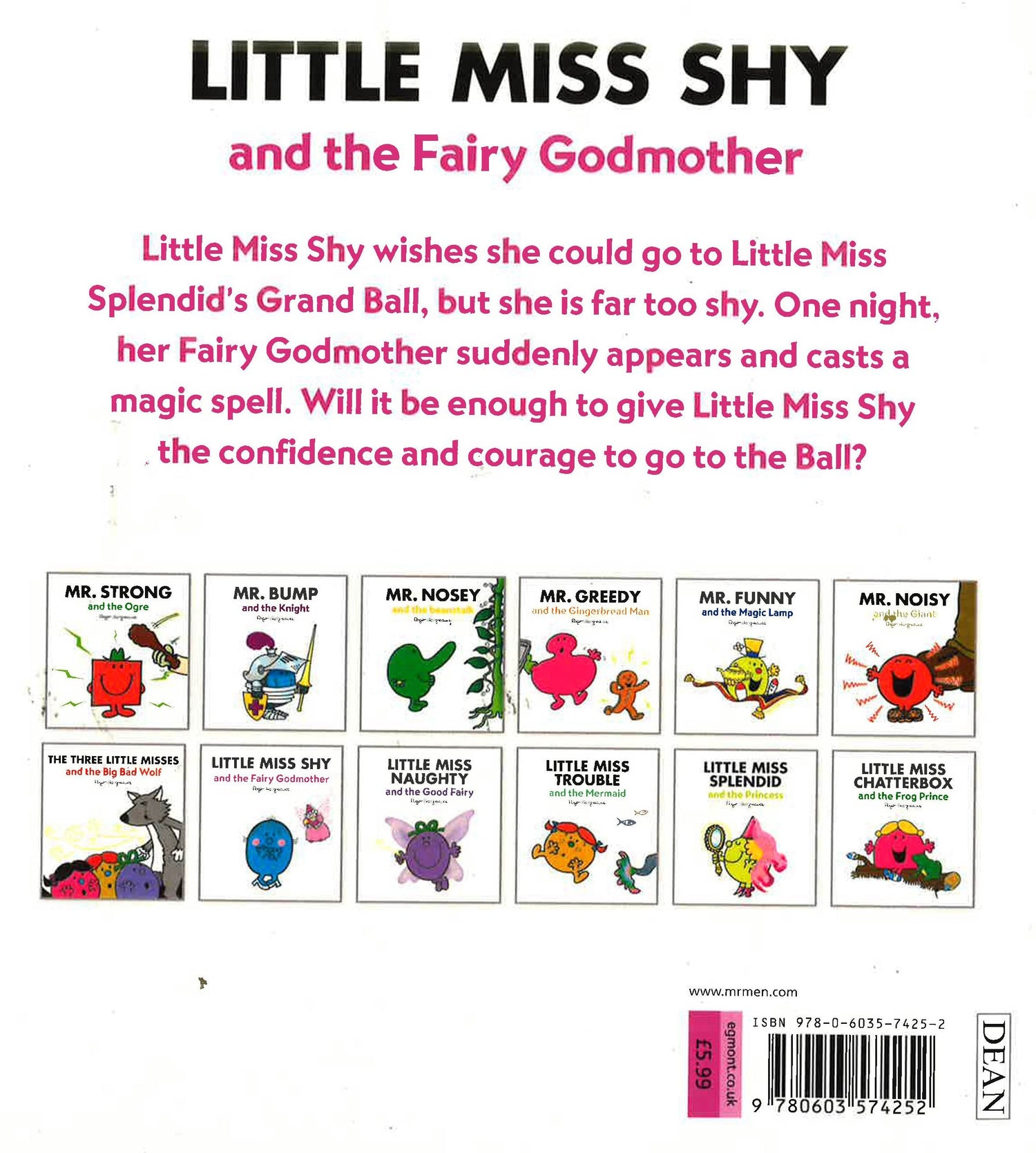 Little Miss Shy is the shyest person that you will ever meet. She has been invited to a Grand Ball but she is just too shy to go. That is until she meets her Fairy Godmother who gives her a very special pair of shoes. A bold Little Miss storybook that fans of Mr Men and Little Miss will love Collect all the fun titles available in this series.