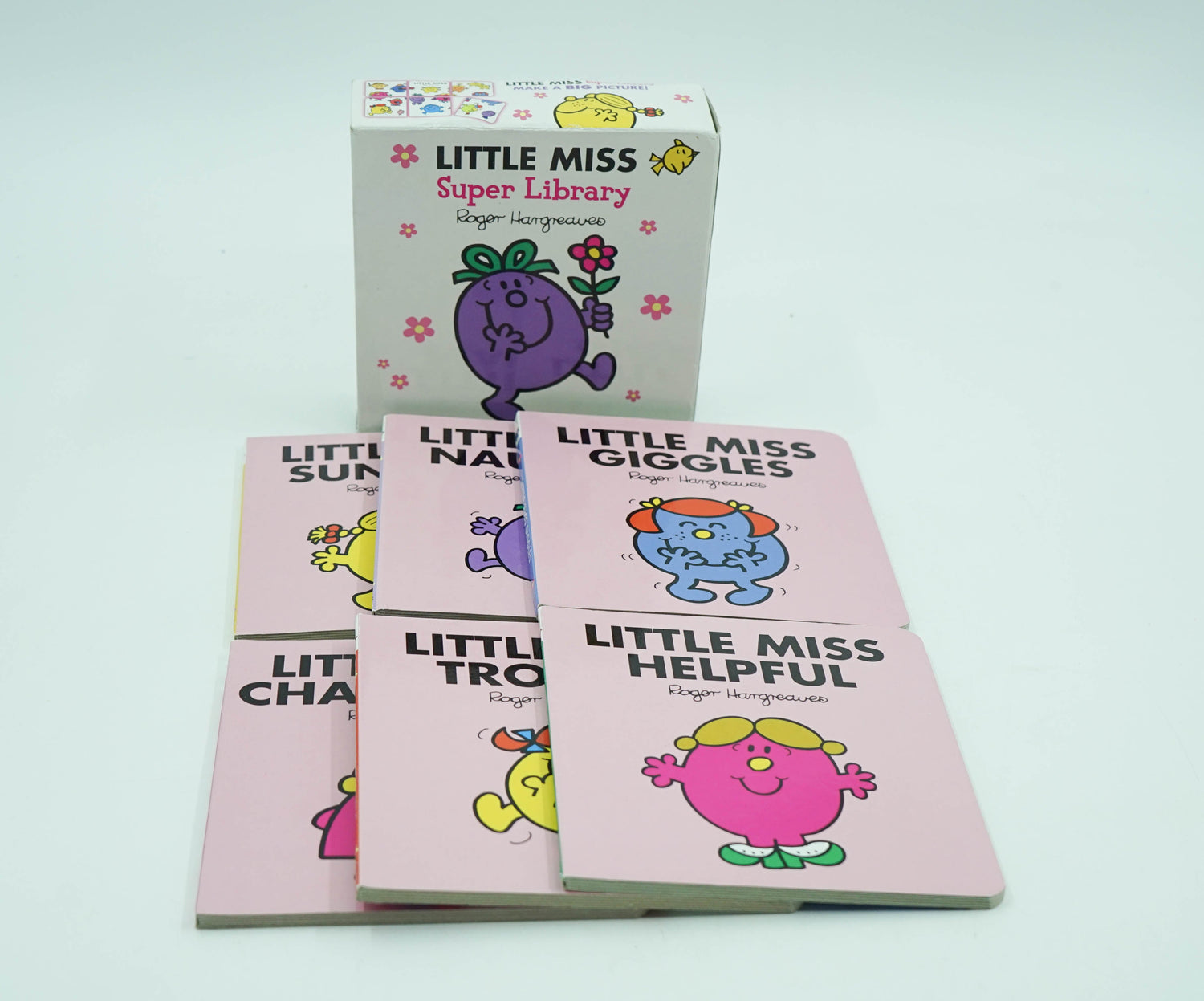 Join six Little Misses in this fun pocket library. - Little Miss Sunshine - Little Miss Naughty - Little Miss Giggles - Little Miss Chatterbox - Little Miss Trouble - Little Miss Helpful Make up this delightful collection. Place the books side-by-side to create a fun picture, too!