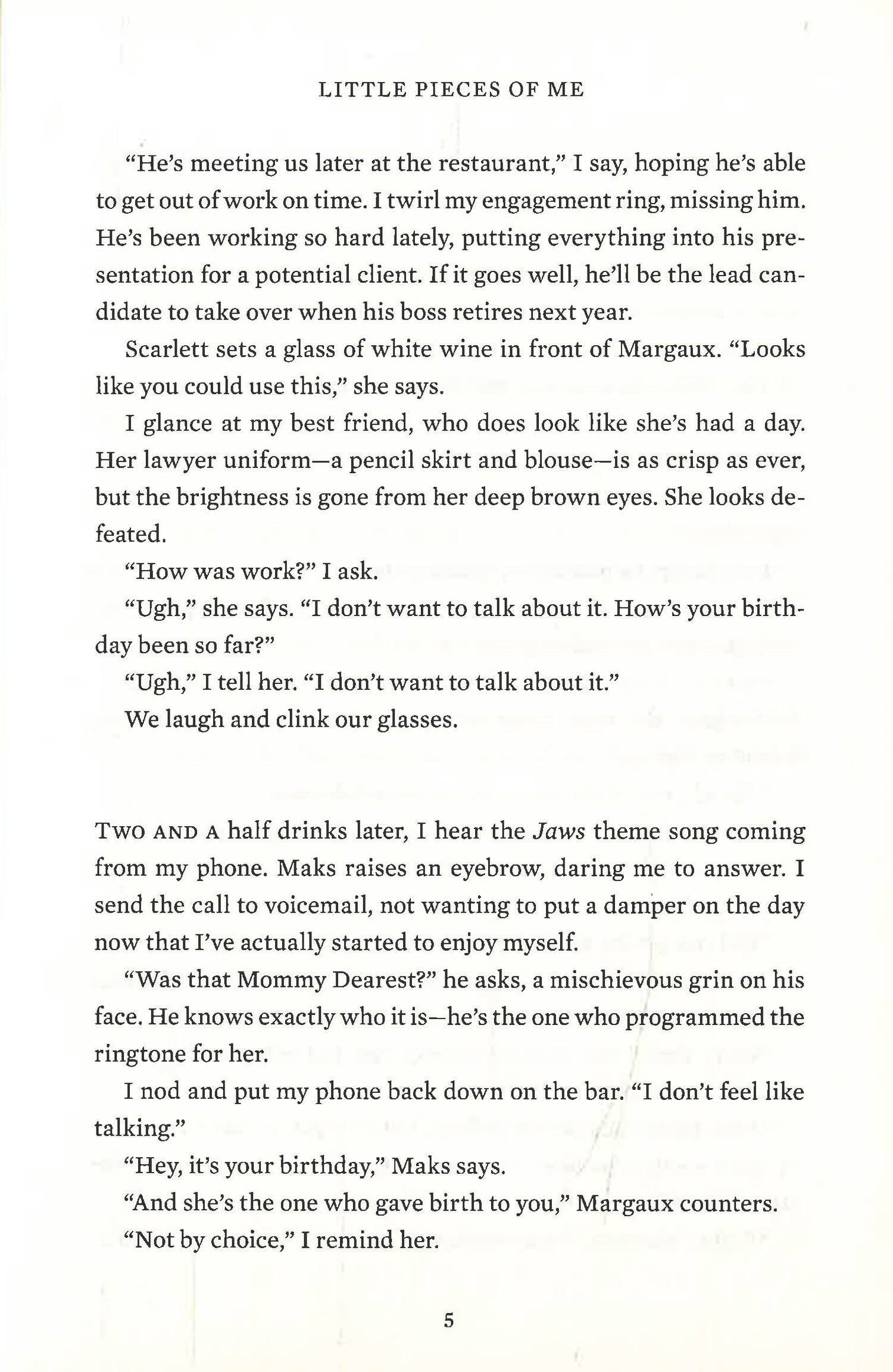 Told in dual timelines, Little Pieces of Me examines identity and how the way we define ourselves changes (or not) through our life experiences.