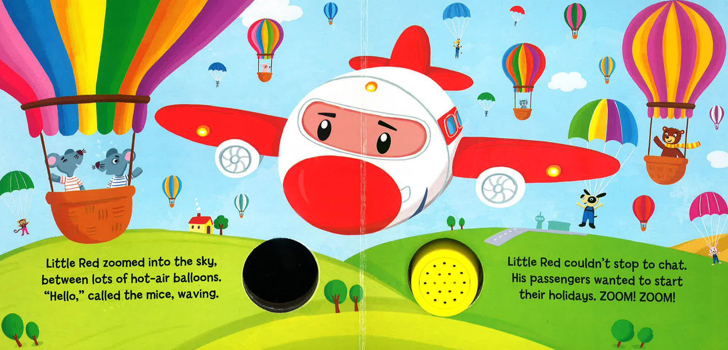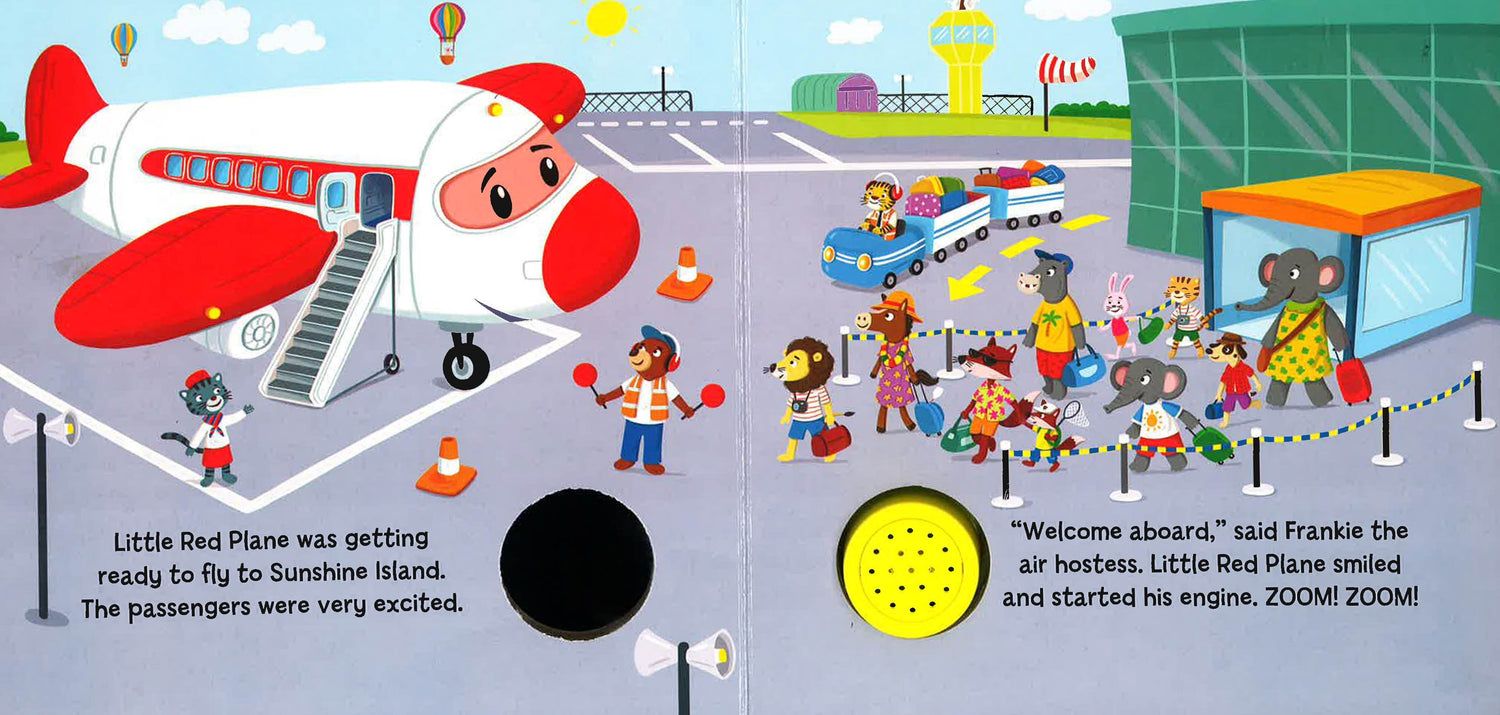 Little Red Plane, Zoom! Zoom! Little Red Plane is ready to fly his passengers to Sunshine Island, but will he get there on time ? With a fun sound button that children will love to press, this book is perfect for a noisy storytime.