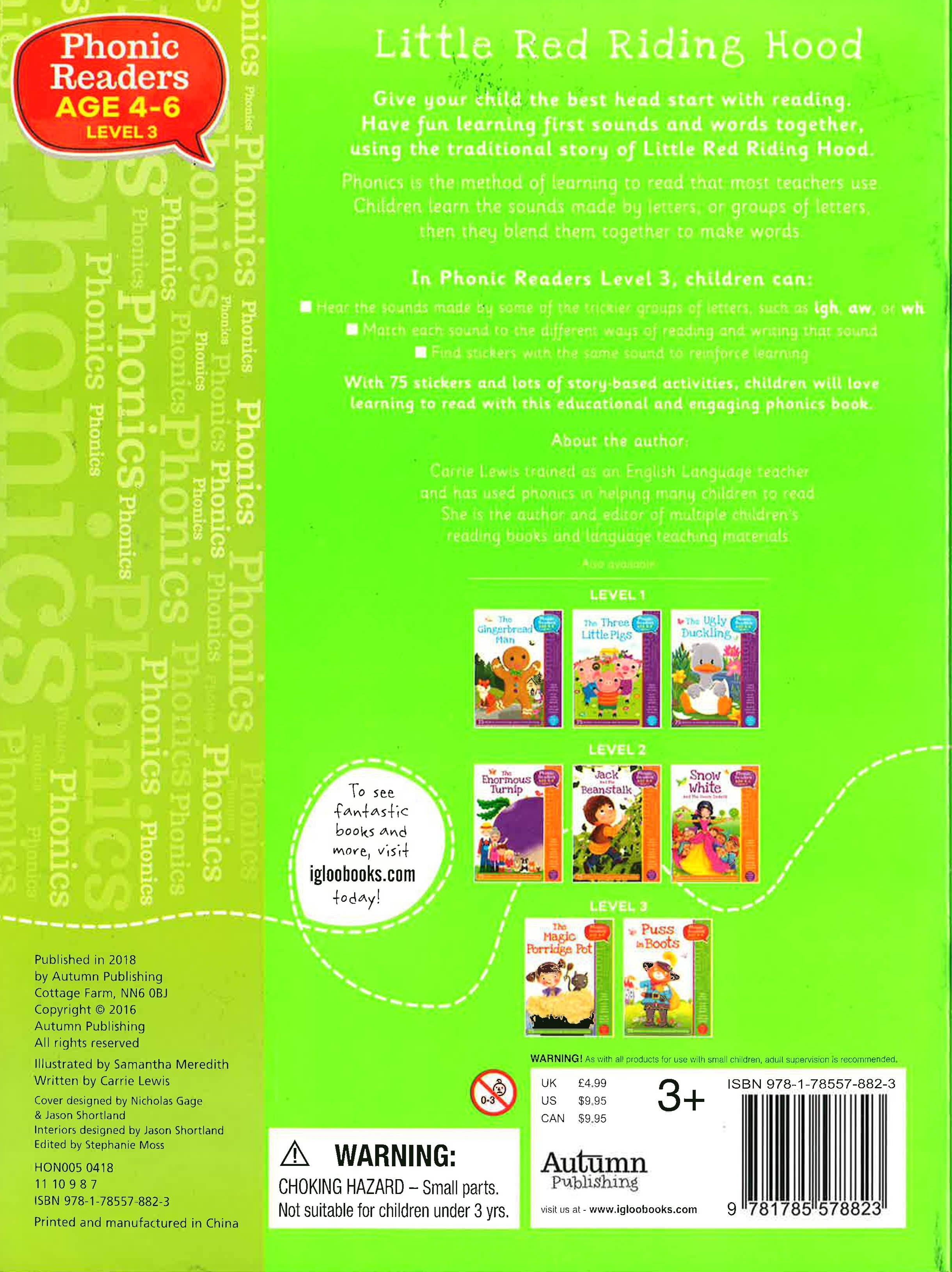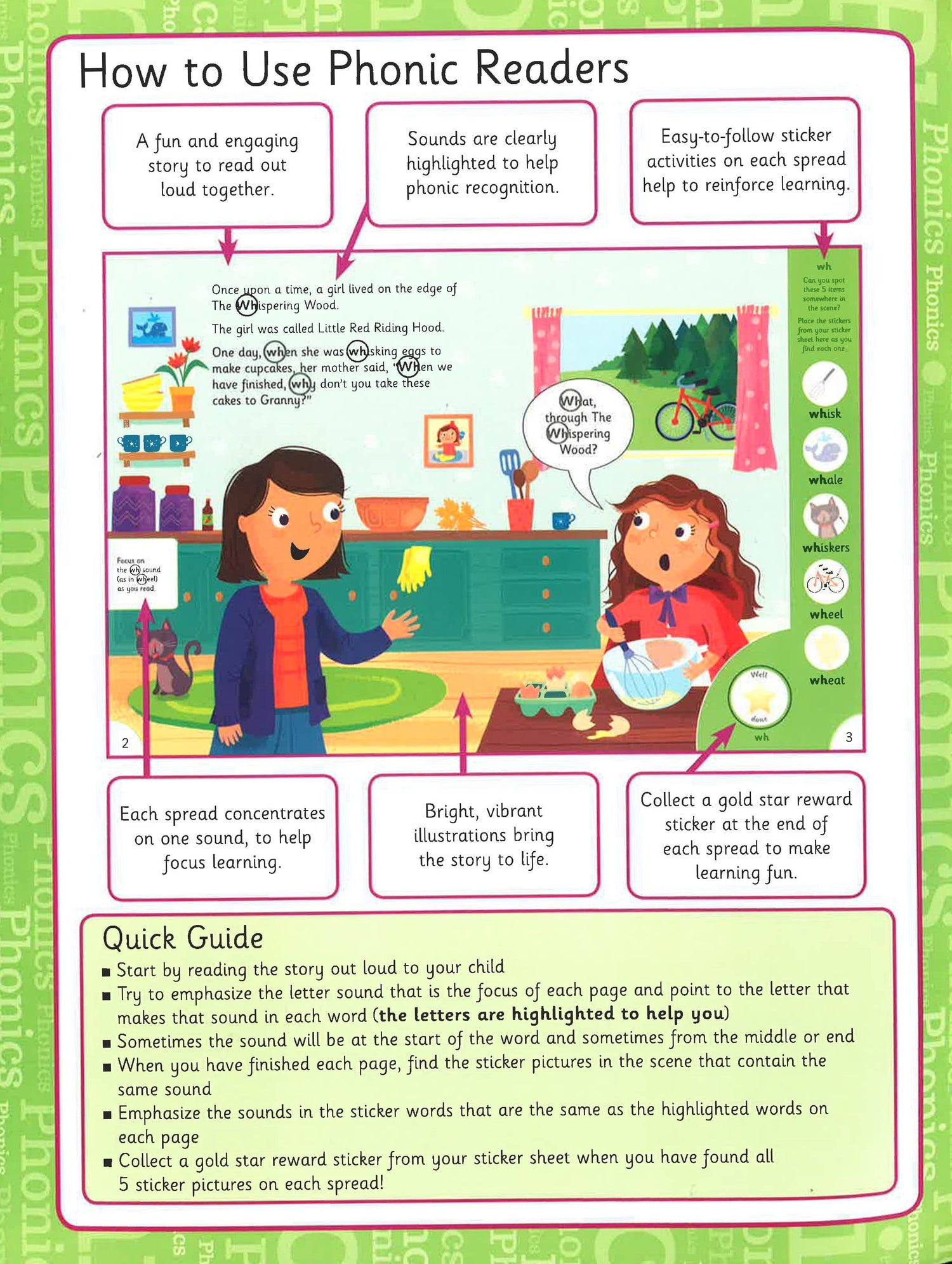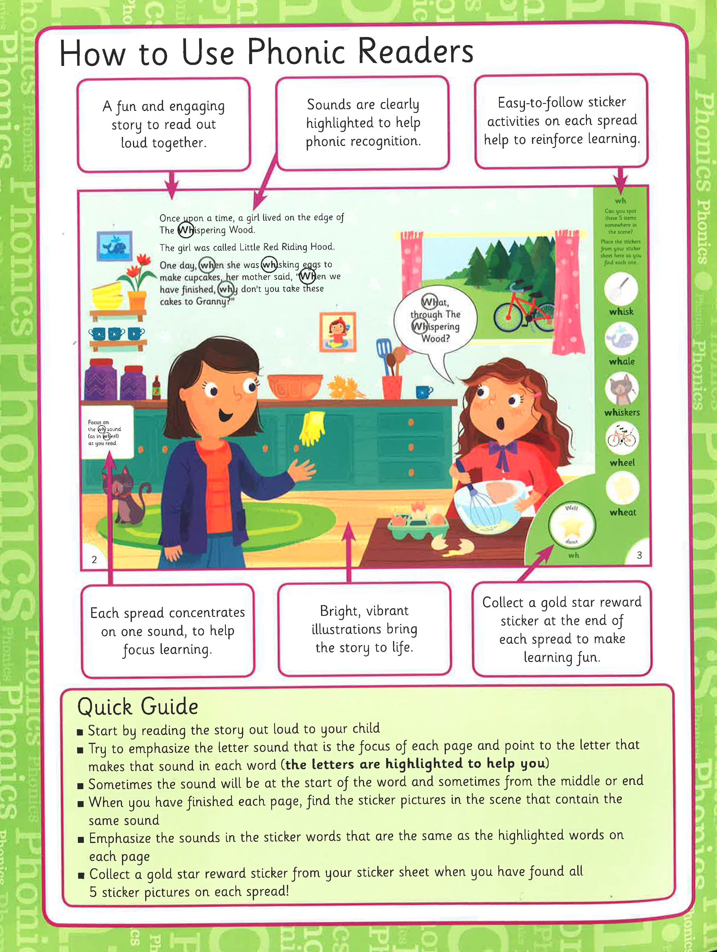 Give your child the best head start with reading. Have fun learning first sounds and words together, using the traditional story of Little Red Riding Hood. Phonics is the method of learning to read that most teachers use. Children learn the sounds made by letters, or group of letters, then they blend them together to make words. With 75 stickers and lots of story-based activities children will love learning to read with this educational and engaging phonics book.