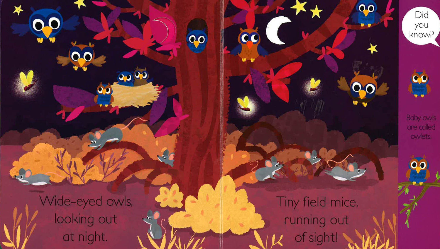 How do bears survive in the winter and what are baby owls called? Find the answers to these questions and many more through the peek-through holes of the forest! Explore the forest and search for all your favourite woodland animals in this fact-packed bite-size animal safari!