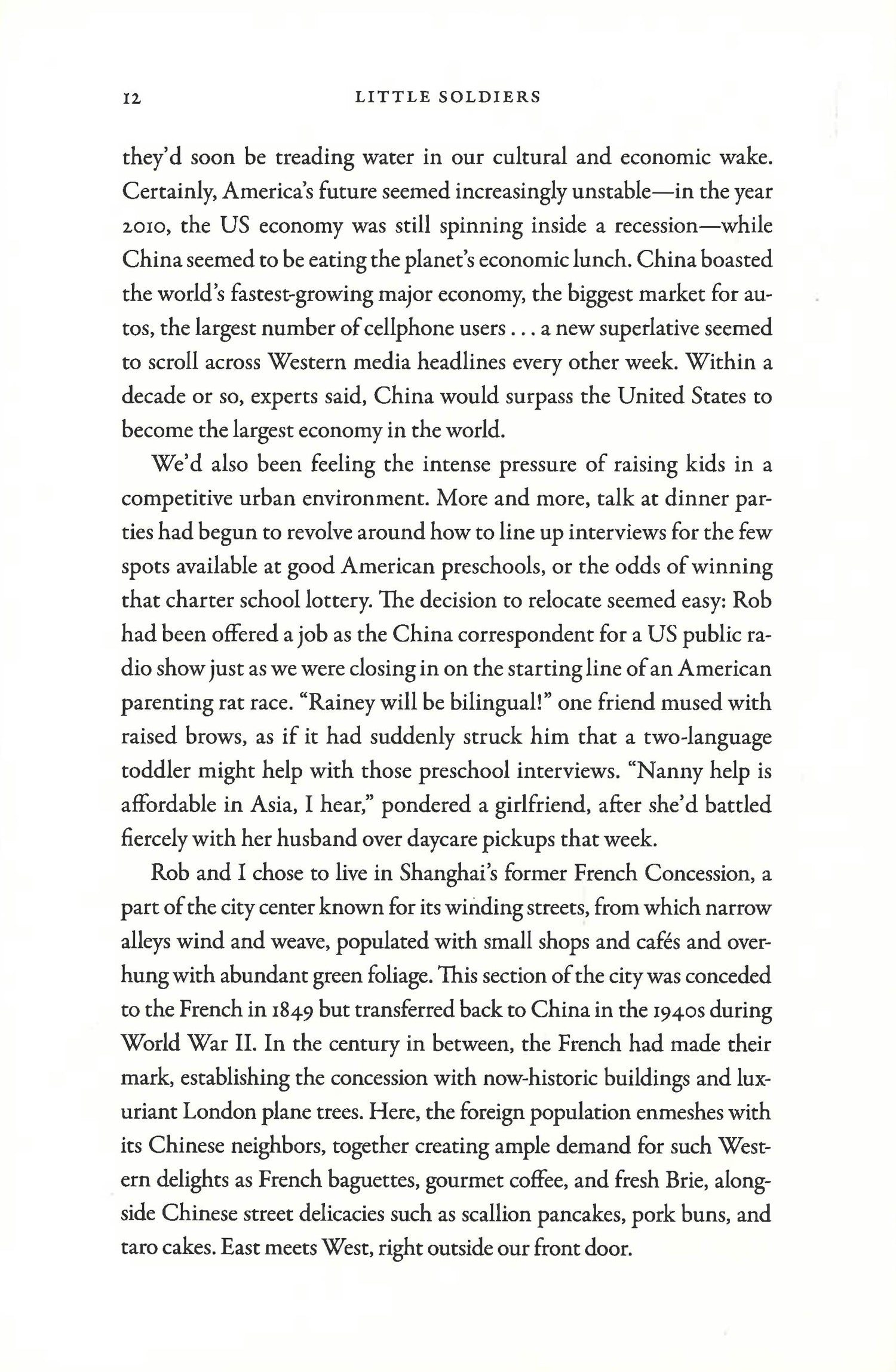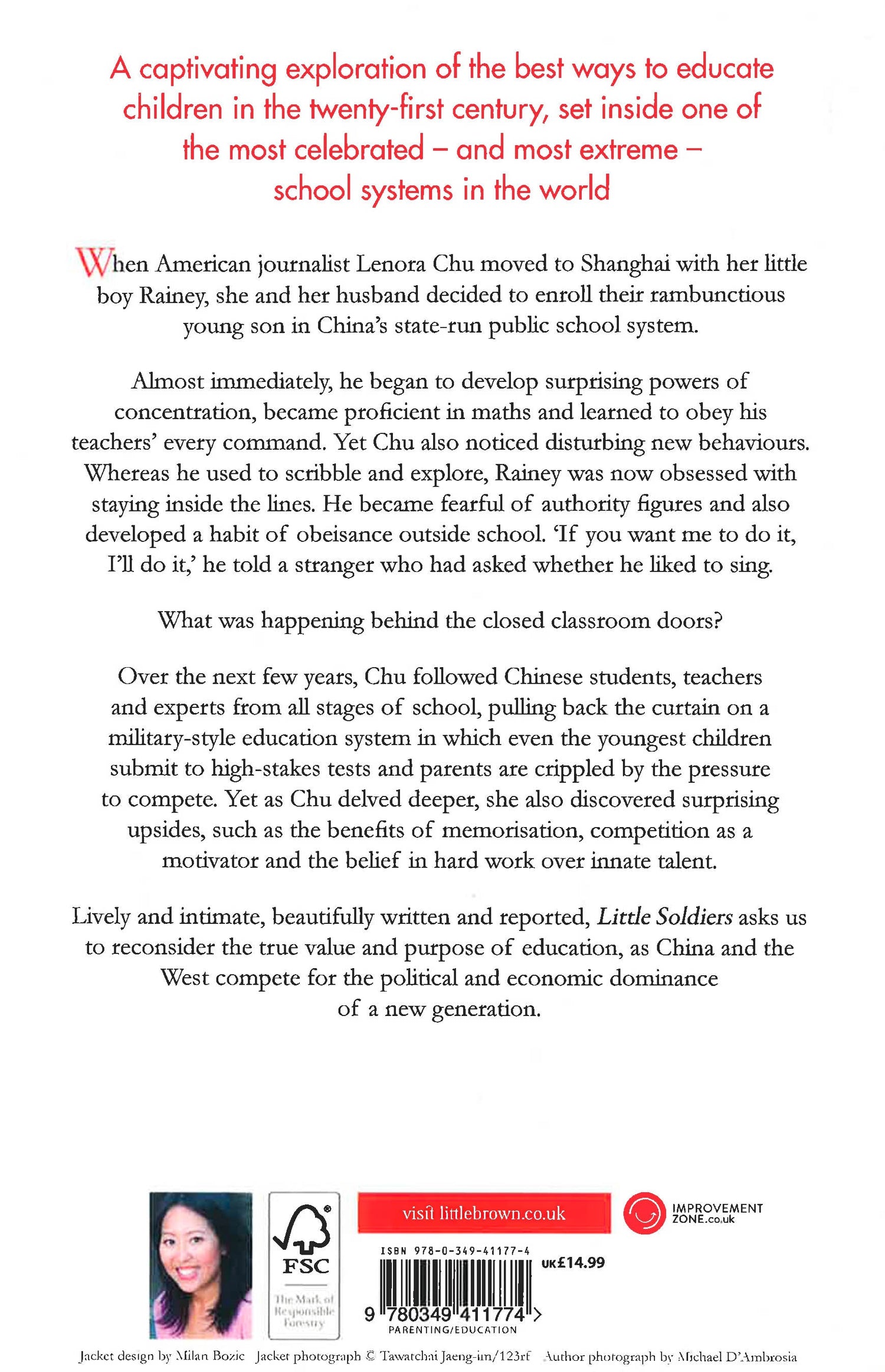 In 2009, Lenora Chu, her husband Rob, and toddler Rainer, moved from LA to the Chinese megacity Shanghai. The US economy was spinning circles, while China seemed to be eating the planet's economic lunch. What's more, Shanghai teenagers were top in the world at maths, reading and science. China was not only muscling the rest of the world onto the sidelines, but it was also out-educating the West. So when Rainer was given the opportunity to enroll in Shanghai's most elite public kindergarten, Lenora and Rob grabbed it. Noticing her rambunctious son's rapid transformation - increasingly disciplined and obedient but more anxious and fearful - Lenora begins to question the system. What the teachers were accomplishing was indisputable, but what to make of their methods? Are Chinese children paying a price for their obedience and the promise of future academic prowess? How much discipline is too much? And is the Chinese education system really what the West should measure itself against? While Rainer was at school, Lenora embarked on a reporting mission to answer these questions in a larger context.