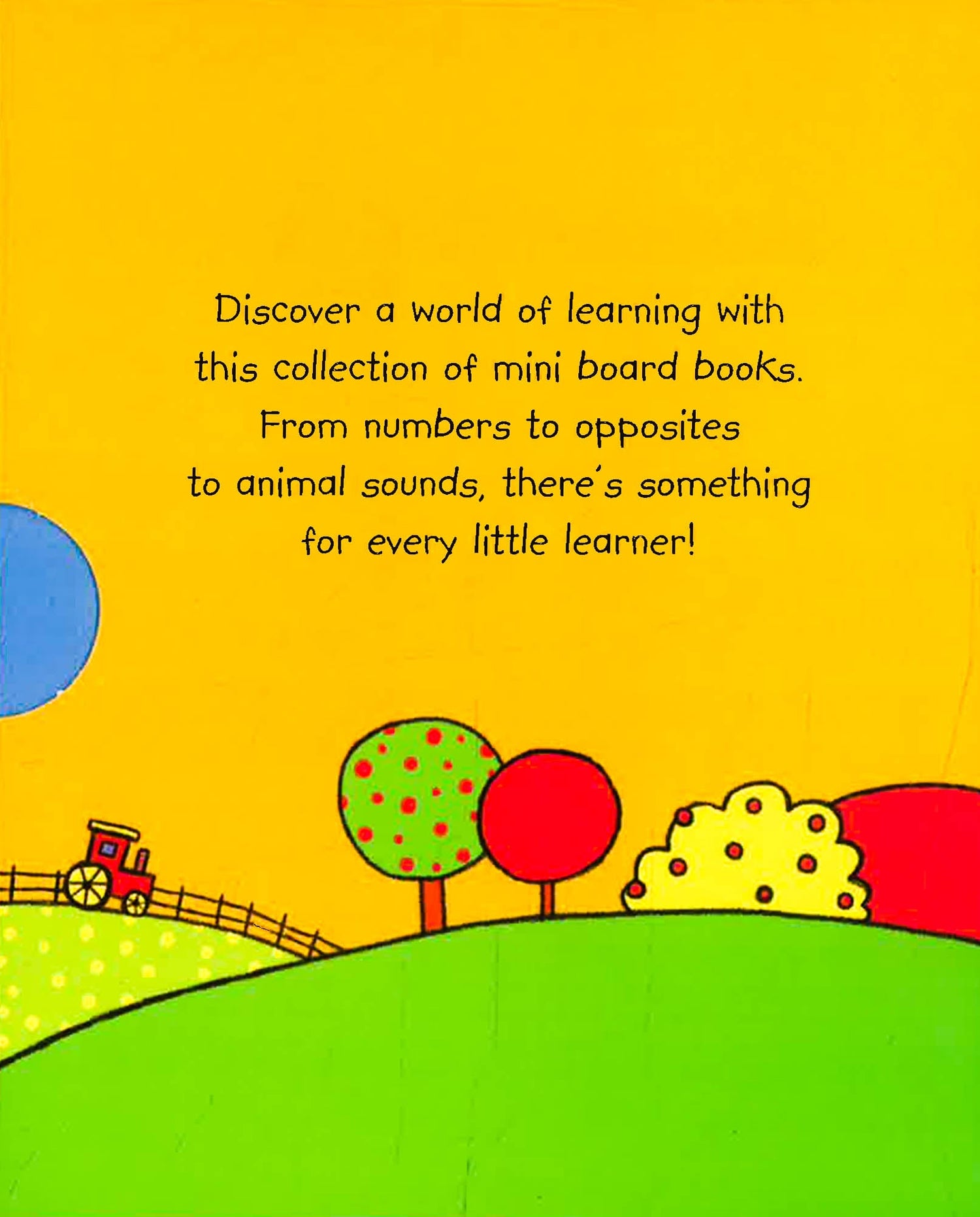 Discover a world of learning with this collection of mini board books. From numbers to colours and opposites to animal sounds, there's something for every little learner!