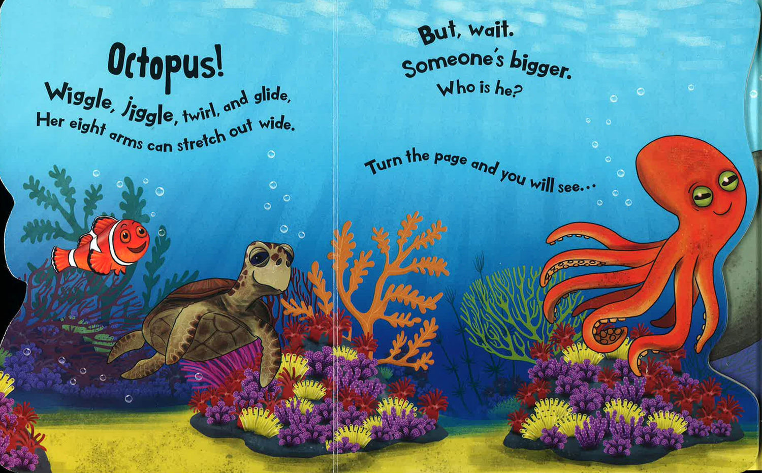 From bugs and fish to elephants and whales, explore the animal kingdom and the depths of the ocean with these interactive board books. Turn each shaped page to reveal an even bigger animal, and try to guess what’s coming next! Start small and go BIG, meeting lots of new creature friends along the way.