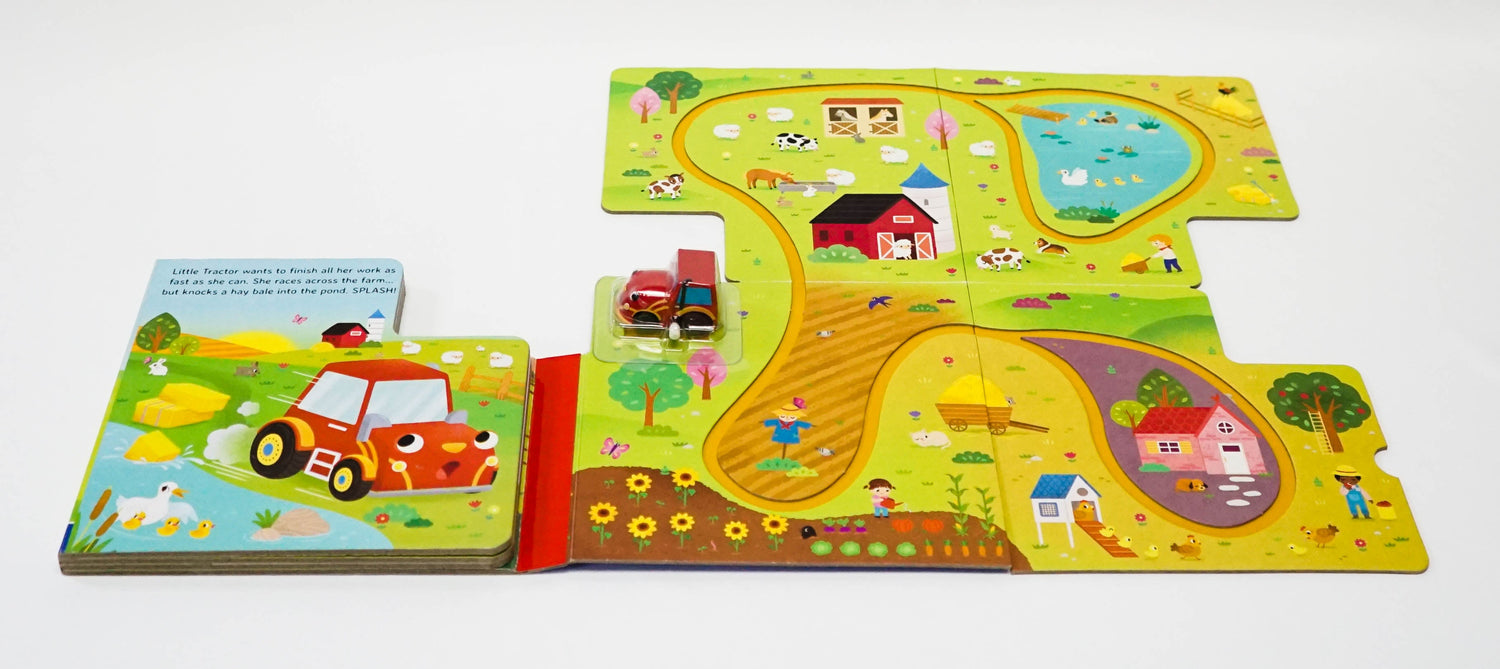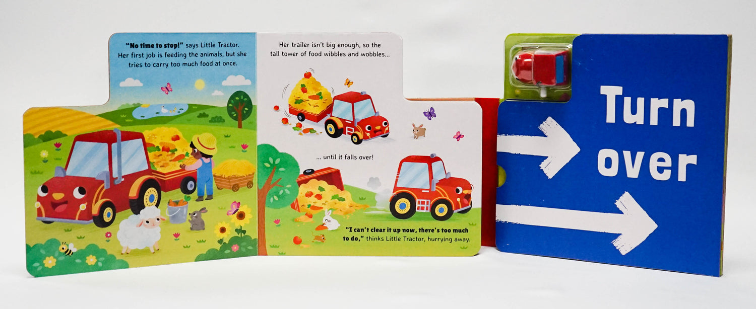 Little Tractor wants to get her work done as fast as she can! This brand-new version of a bestselling title includes a toy tractor and fold-out farm
