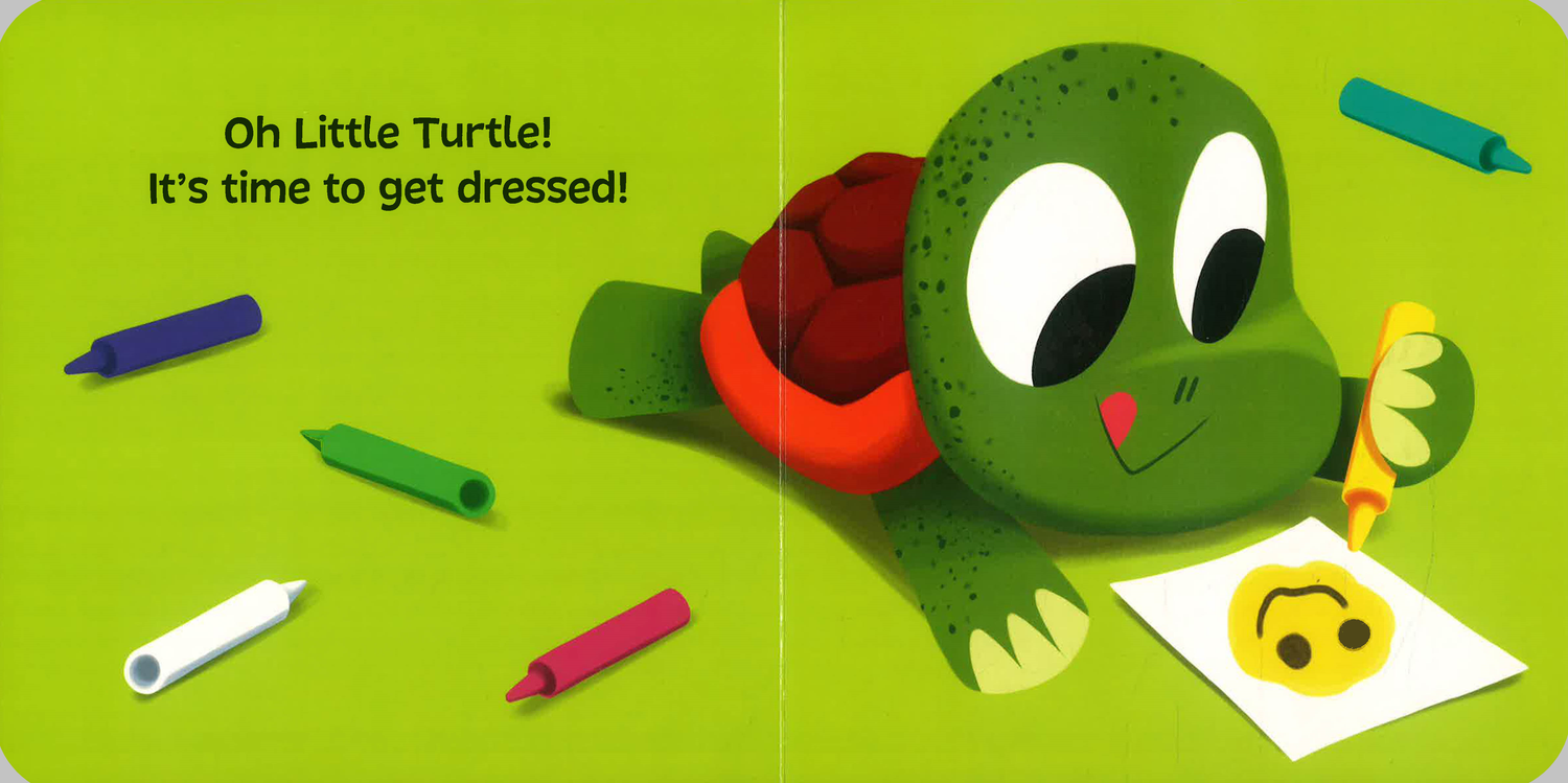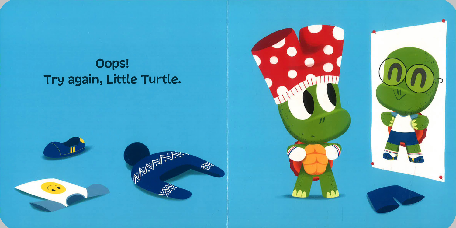 It's time to get dressed, which is no easy task for Little Turtle! But Little Turtle will not give up. Keep on trying, Little Turtle!