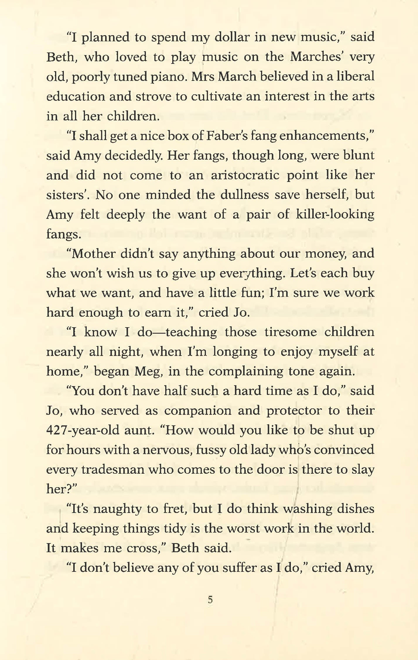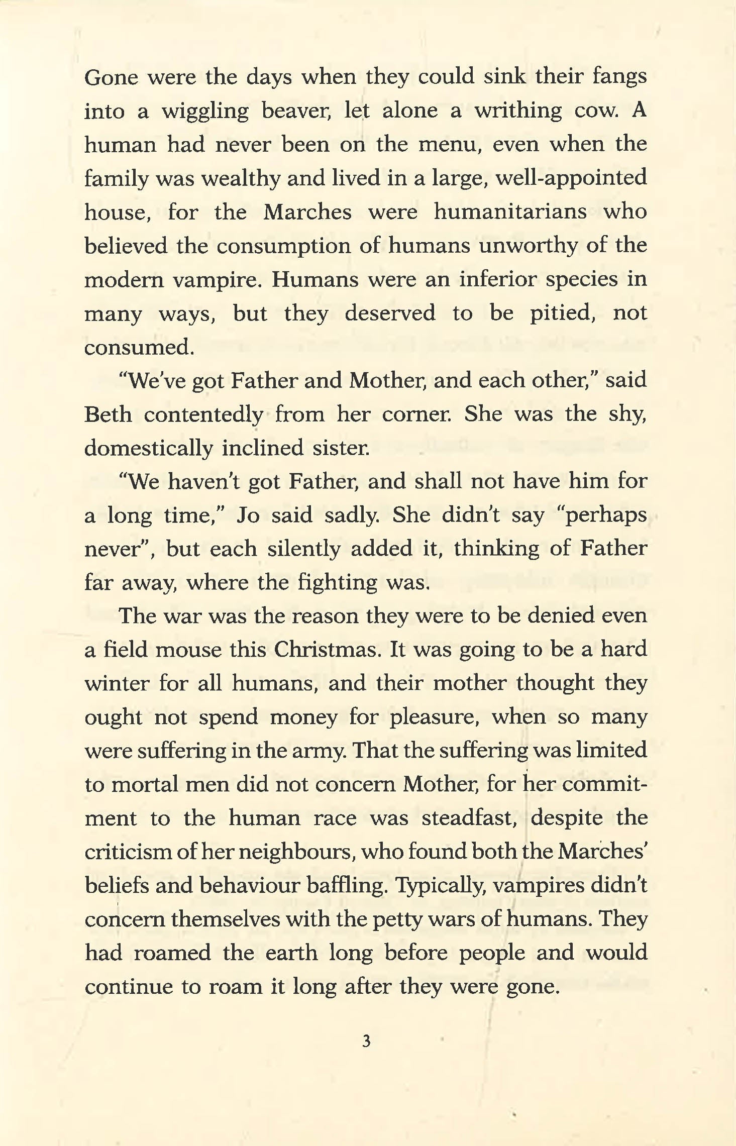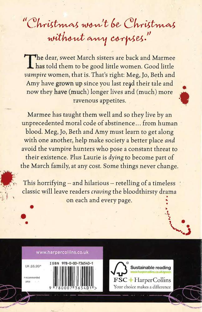 The dear, sweet March sisters are back, and Marmee has told them to be good little women. Good little vampire women, that is. That's right: Meg, Jo, Beth, and Amy have grown up since you last read their tale, and now they have (much) longer lives and (much) more ravenous appetites. Marmee has taught them well, and so they live by an unprecedented moral code of abstinence . . . from human blood. Meg, Jo, Beth, and Amy must learn to get along with one another, help make society a better place, and avoid the vampire hunters who pose a constant threat to their existence. Plus, Laurie is dying to become a part of the March family, at any cost. Some things never change. This horrifying - and hilarious - retelling of a timeless American classic will leave readers craving the bloodthirsty drama on each and every page.