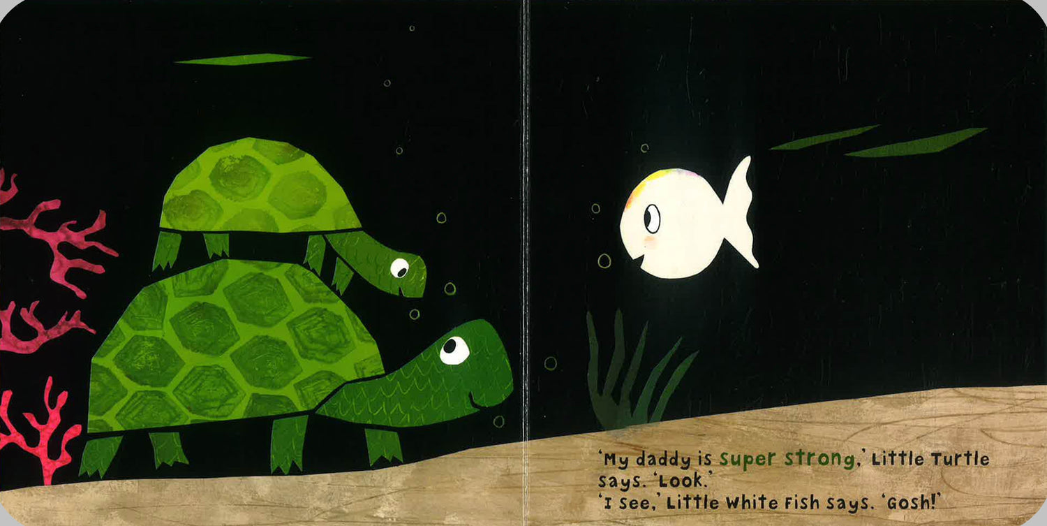 Little White Fish has a lot of friends. And they all have amazing dads: one dad is super strong, one is the biggest of all, one is clever and one is funny. But of course Little White Fish's daddy is very good at something too...