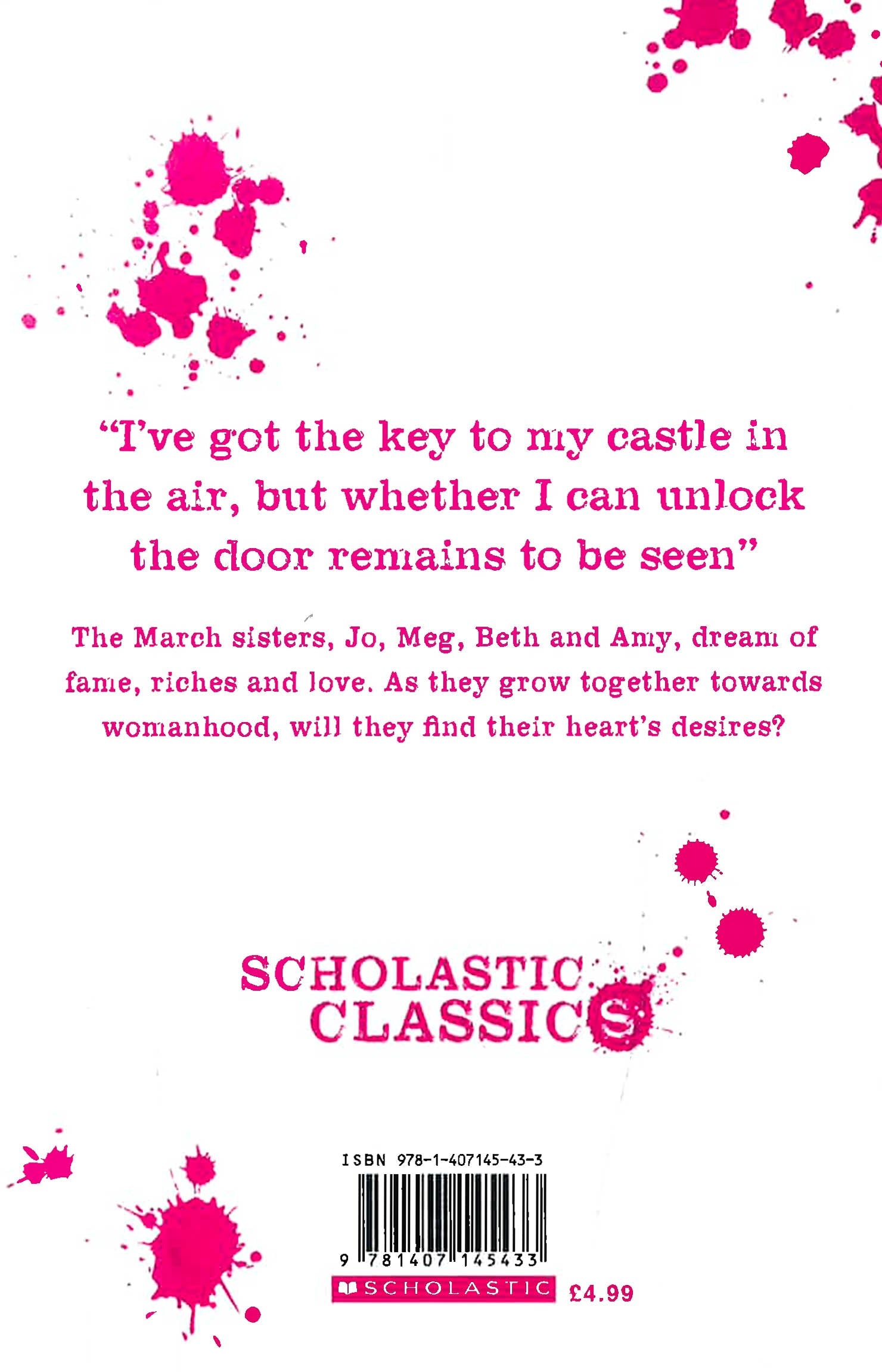 The timeless tale of four sisters - Meg, Jo, Amy and Beth - experiencing both hardship and adventure in Civil War New England. In this simple, enthralling tale, Louisa May Alcott created four of American literature's most beloved "little women". Scholastic Children's Books are proud to publish this beautiful edition of the classic tale, Little Women. 'I want to do something splendid... something heroic or wonderful that won't be forgotten after I'm dead. I don't know what, but I'm on the watch for it and mean to astonish you all someday.' Curl up with this timeless classic, and your new best friends - Meg, Jo, Beth and Amy, the four March sisters whose lives will bring tears to your eyes and warmth to your heart, and whose stories will stay with you forever.
