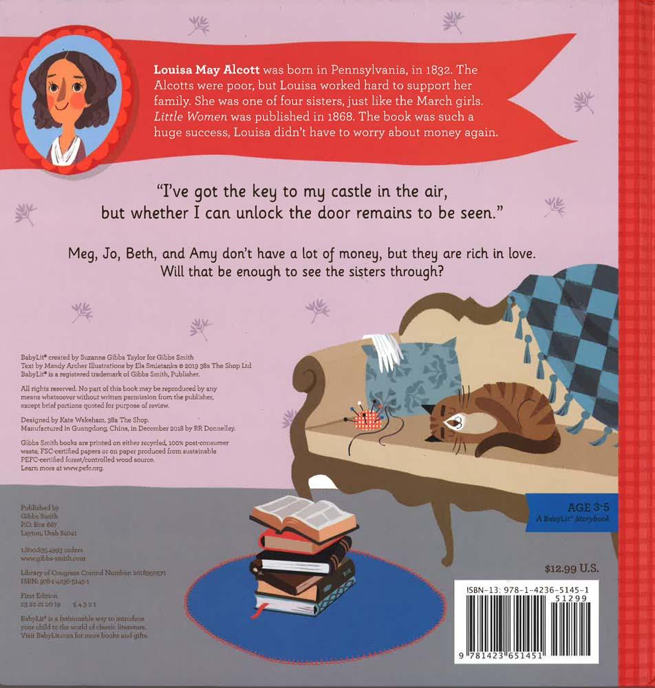 BabyLit(R) primers have become the chic, smart way to introduce babies to the most beloved and readable literature of our time. Gibbs Smith is now presenting a delightful collection of picture books, lovingly designed and crafted for young children. Each book retells a story from the literary canon, bringing a classic to life for an entirely new audience. In Little Women, preschoolers meet Meg, Jo, Beth, Amy, and Marmee, following the March family as they grow and learn. Easy-to-follow, engaging text combined with original quotes and beautiful artwork create a book to be treasured through childhood and beyond. Part of the BabyLit(R) Storybook Series.