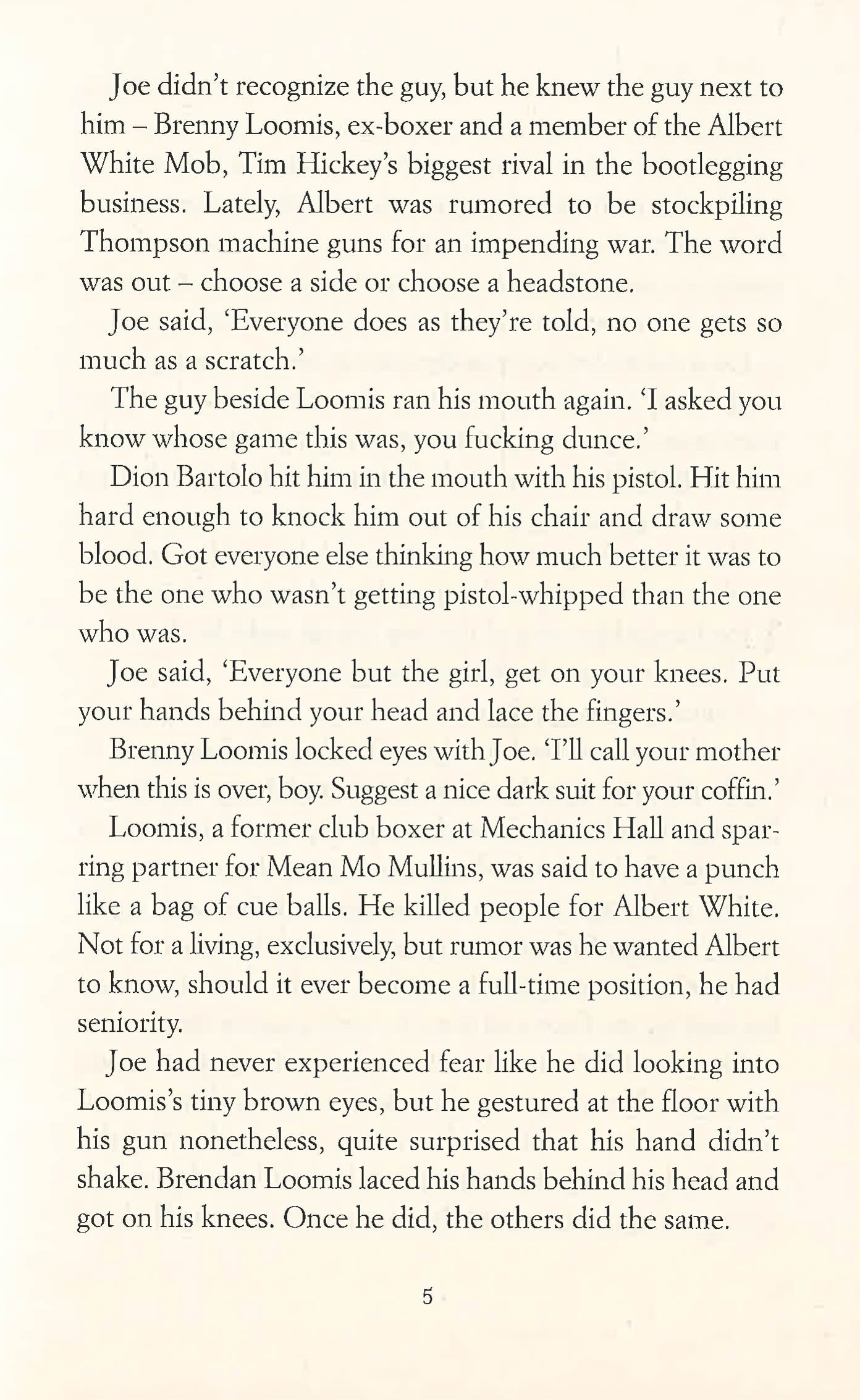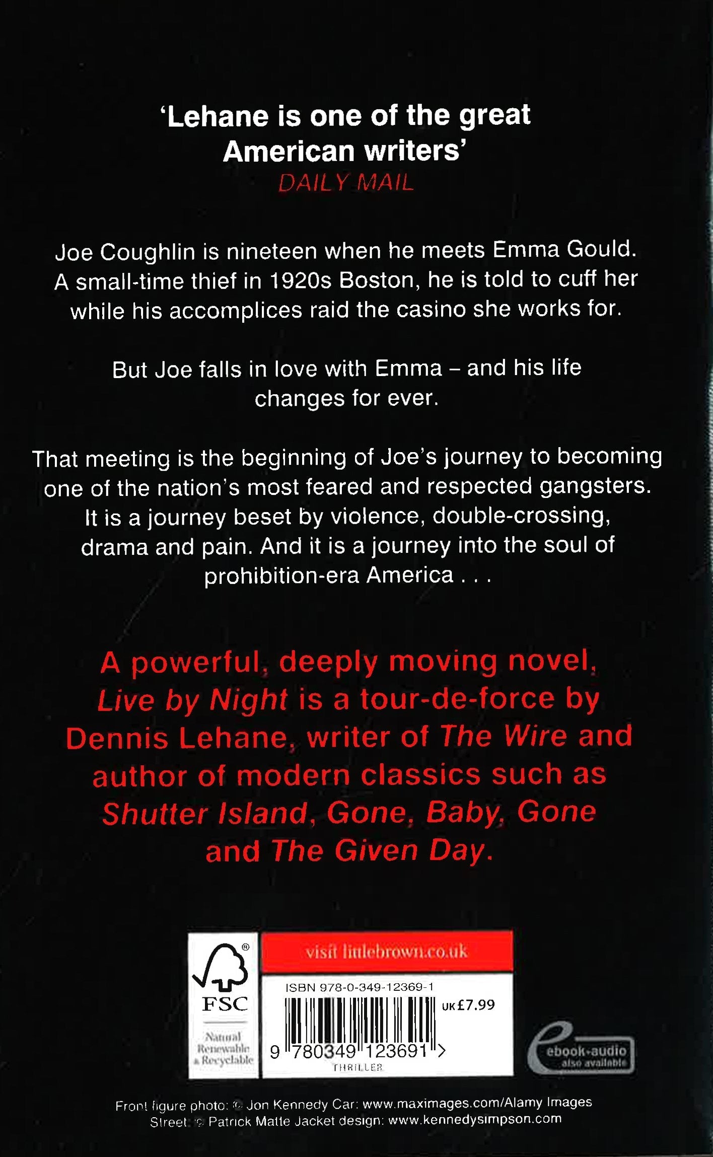 Joe Coughlin is nineteen when he meets Emma Gould. A smalltime thief in 1920s Boston, he is told to cuff her while his accomplices raid the casino she works for. But Joe falls in love with Emma - and his life changes for ever. That meeting is the beginning of Joe's journey to becoming one of the nation's most feared and respected gangsters. It is a journey beset by violence, double-crossing, drama and pain. And it is a journey into the soul of prohibition-era America...A powerful, deeply moving novel, Live By Night is a tour-de-force by Dennis Lehane, writer on The Wire and author of modern classics such as Shutter Island, Gone, Baby, Gone and The Given Day.