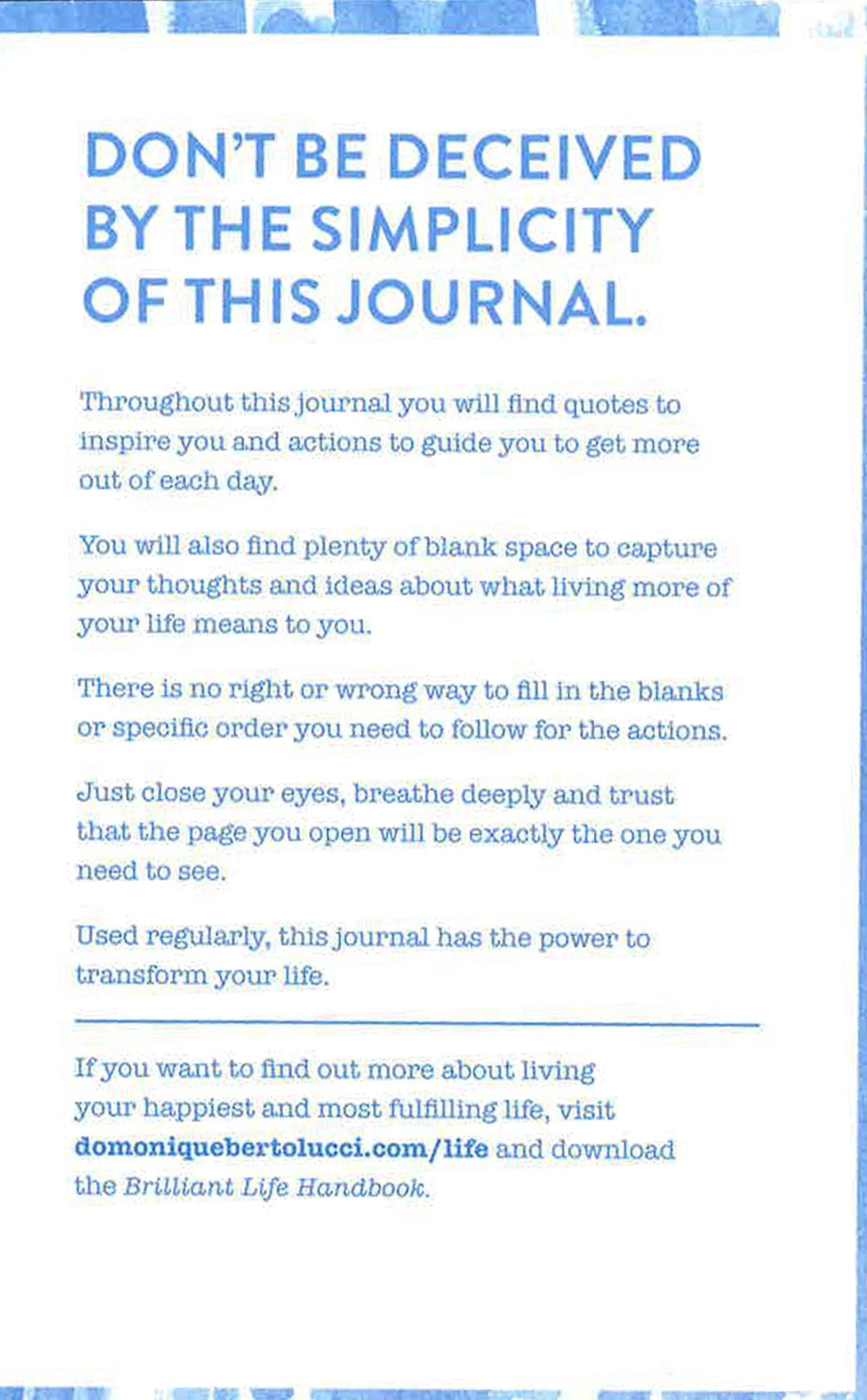 Trying to do it all is exhausting. This 240-page guided journal will steer you in making the small, daily changes that lead to more energy, less stress and a simpler life. It's packed with inspiring quotes, exercises and prompts to help you declutter your mind, simplify your life and make time and space for the things that really matter.