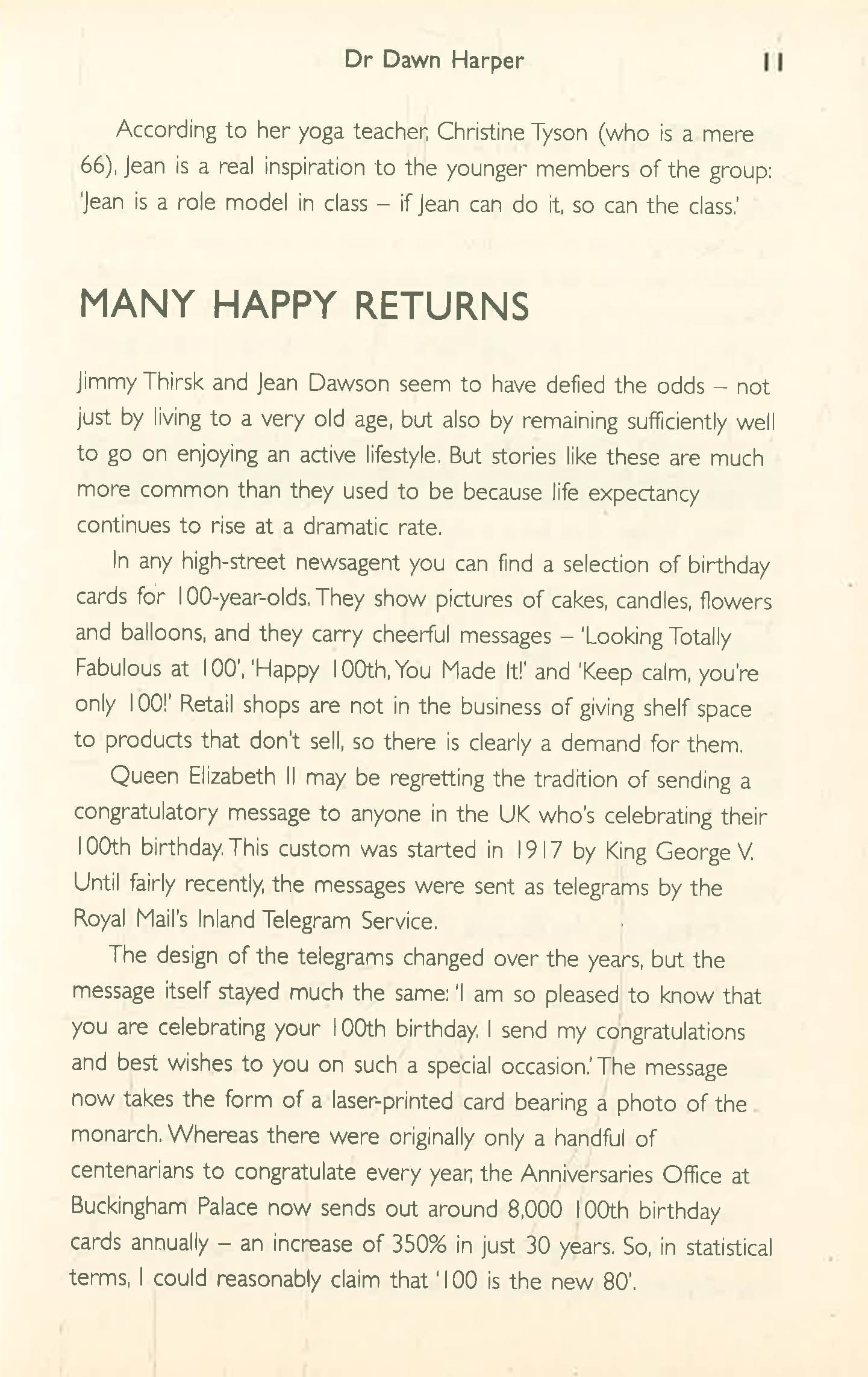 In this fascinating, life-changing book, Dr Dawn gives you a variety of simple tips to help give yourself the best chance to live a long and happy life. There are steps that we can all take, starting now, no matter what age we are each are.