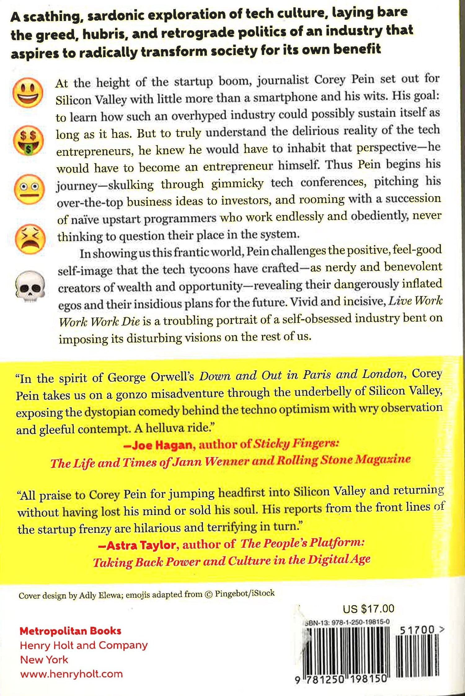 In showing us this frantic world, Pein challenges the positive, feel-good self-image that the tech tycoons have crafted-as nerdy and benevolent creators of wealth and opportunity-revealing their self-justifying views and their insidious visions for the future. Vivid and incisive, Live Work Work Work Die is a troubling portrait of a self-obsessed industry bent on imposing its disturbing visions on the rest of us.