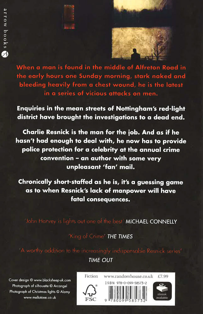 When a man is found in the middle of Alfreton Road in the early hours one Sunday morning, stark naked and bleeding heavily from a chest wound, he is the latest in a series of viscous attacks on men. Enquiries in the mean-streets of Nottingham's red-light district have brought the investigations to a dead end. Charlie Resnick is the man for the job. And as if he hasn't had enough to deal with, he now has to provide police protection for a celebrity at the annual crime convention - an author with some very unpleasant 'fan' mail. Chronically short-staffed as he is, it's a guessing game as to when Resnick's lack of manpower will have fatal consequences.