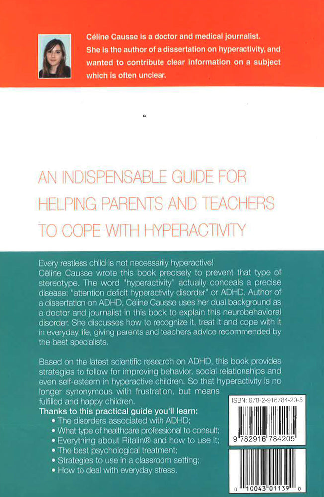 This is an indispensable guide for helping parents, teachers, and carers to cope with hyperactivity in children.It helps in understanding the disorder and learning the best responses.Dr Celine Causse is a medical practitioner and medical journalist. She is author of a respected dissertation on hyperactivity, and wanted to contribute clear information on a subject which is often unclear.