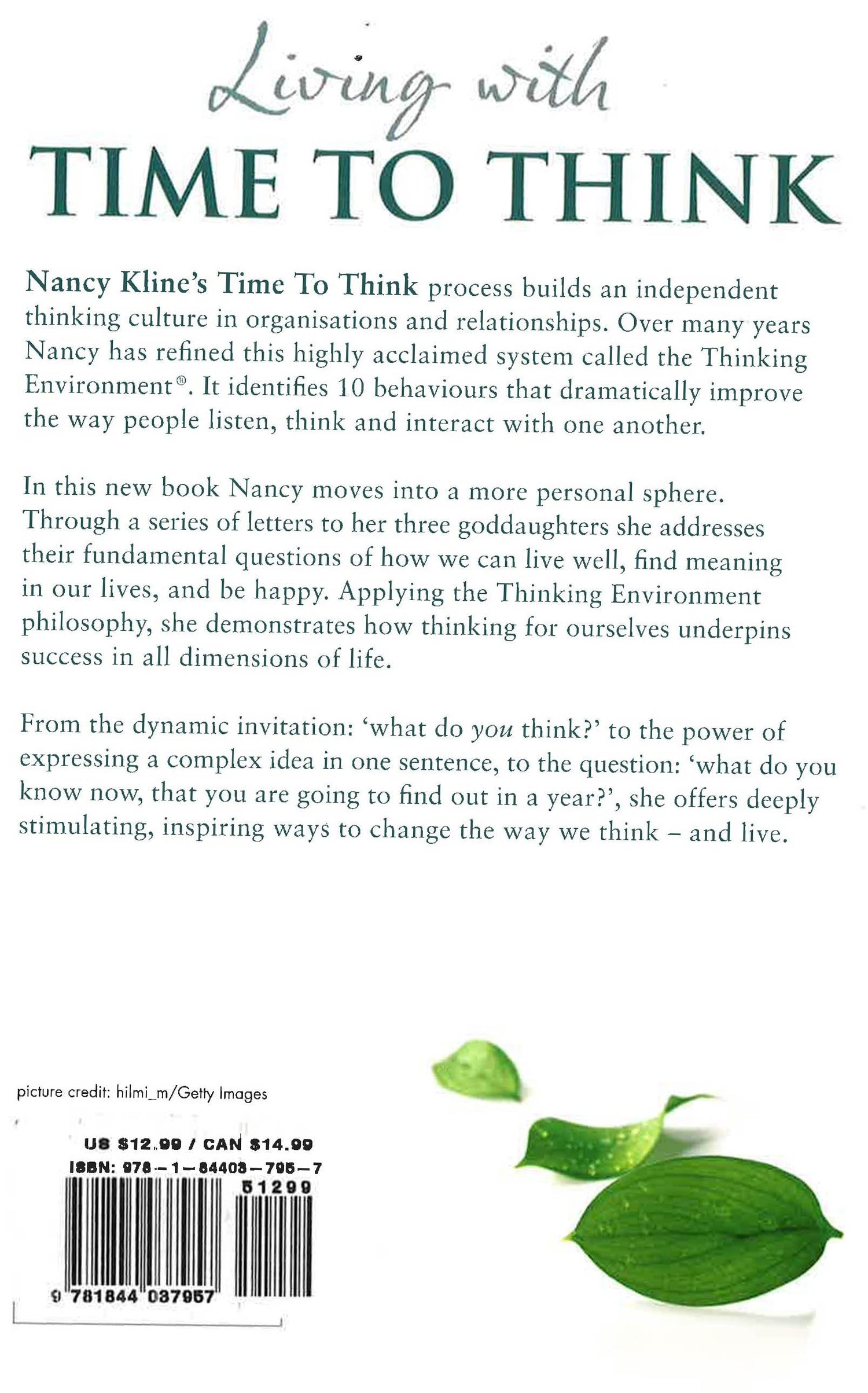 Nancy Kline's Time To Think process builds an independent thinking culture in organisations and relationships. Over many years Nancy has refined this highly acclaimed system called the Thinking Environment. It identifies 10 behaviours that dramatically improve the way people listen, think and interact with one another. In this new book Nancy takes her thinking into a more personal sphere. Through a series of letters to her three goddaughters she addresses the fundamental questions of how we can live well, find meaning in our lives, and be happy. Applying the Thinking Environment philosophy, she demonstrates how thinking for ourselves underpins successful in all dimensions of life. From the Amy Question: 'what do you know now, that you are going to find out in a year?, to the power of expressing a complex idea idea in one sentence, to the generative invitation: 'what do you think?', she offers deeply stimulating, inspiring ways to the way we think - and live.