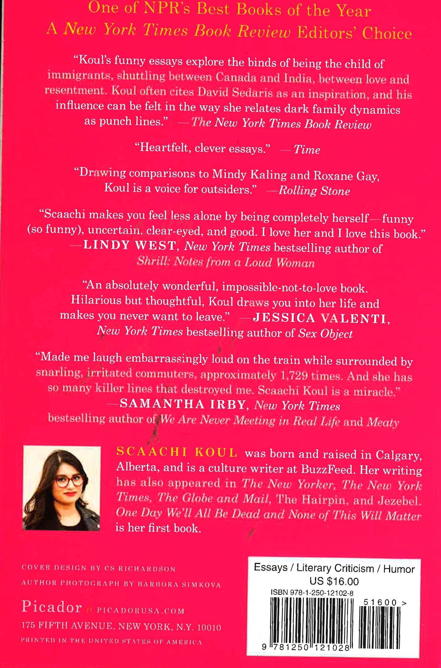 In One Day We'll All Be Dead and None of This Will Matter, Scaachi Koul deploys her razor-sharp humor to share all the fears, outrages, and mortifying moments of her life. She learned from an early age what made her miserable, and for Scaachi anything can be cause for despair. Whether it's a shopping trip gone awry; enduring awkward conversations with her bikini waxer; overcoming her fear of flying while vacationing halfway around the world; dealing with Internet trolls, or navigating the fears and anxieties of her parents. Alongside these personal stories are pointed observations about life as a woman of color: where every aspect of her appearance is open for critique, derision, or outright scorn; where strict gender rules bind in both Western and Indian cultures, leaving little room for a woman not solely focused on marriage and children to have a career (and a life) for herself.