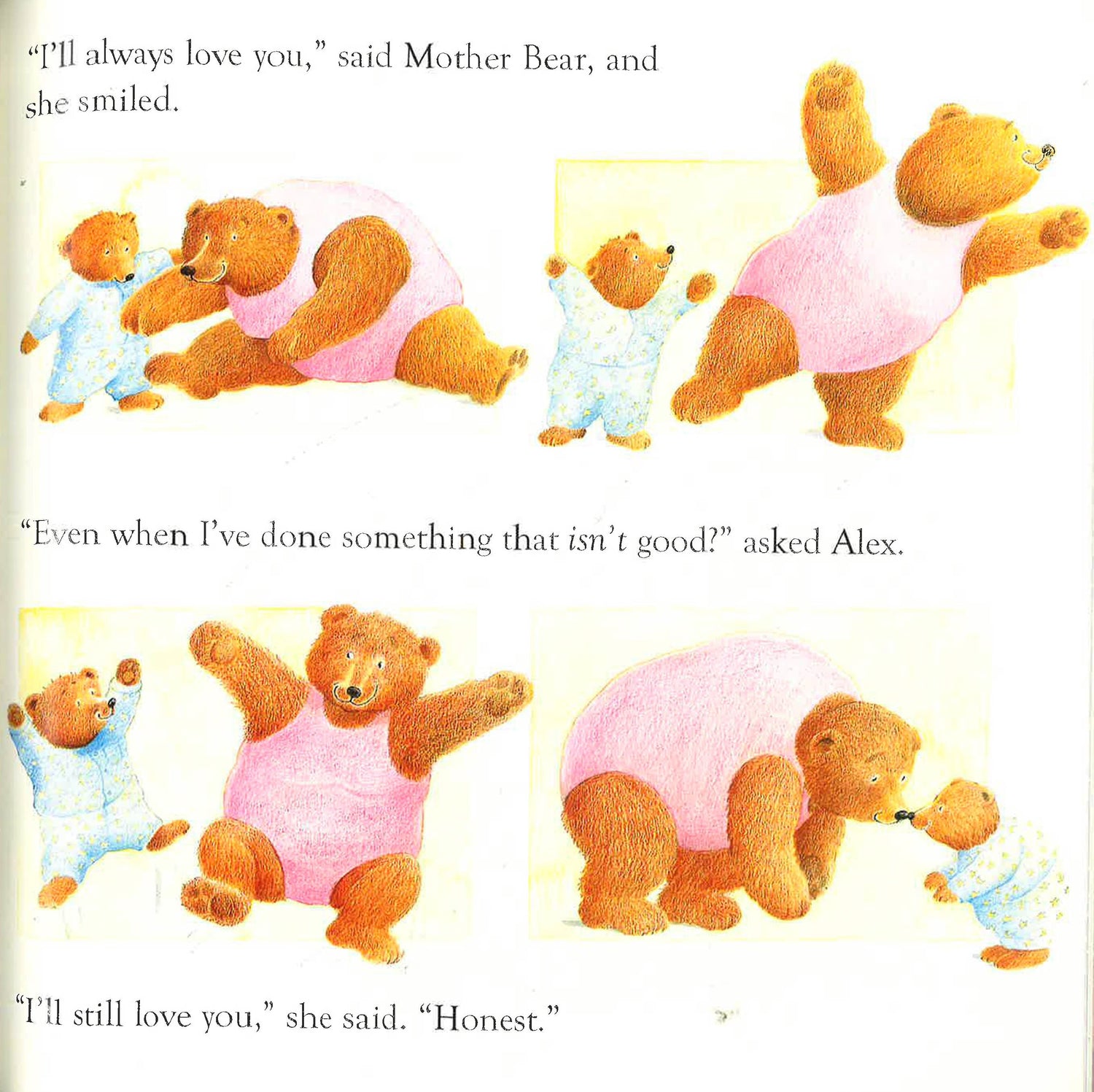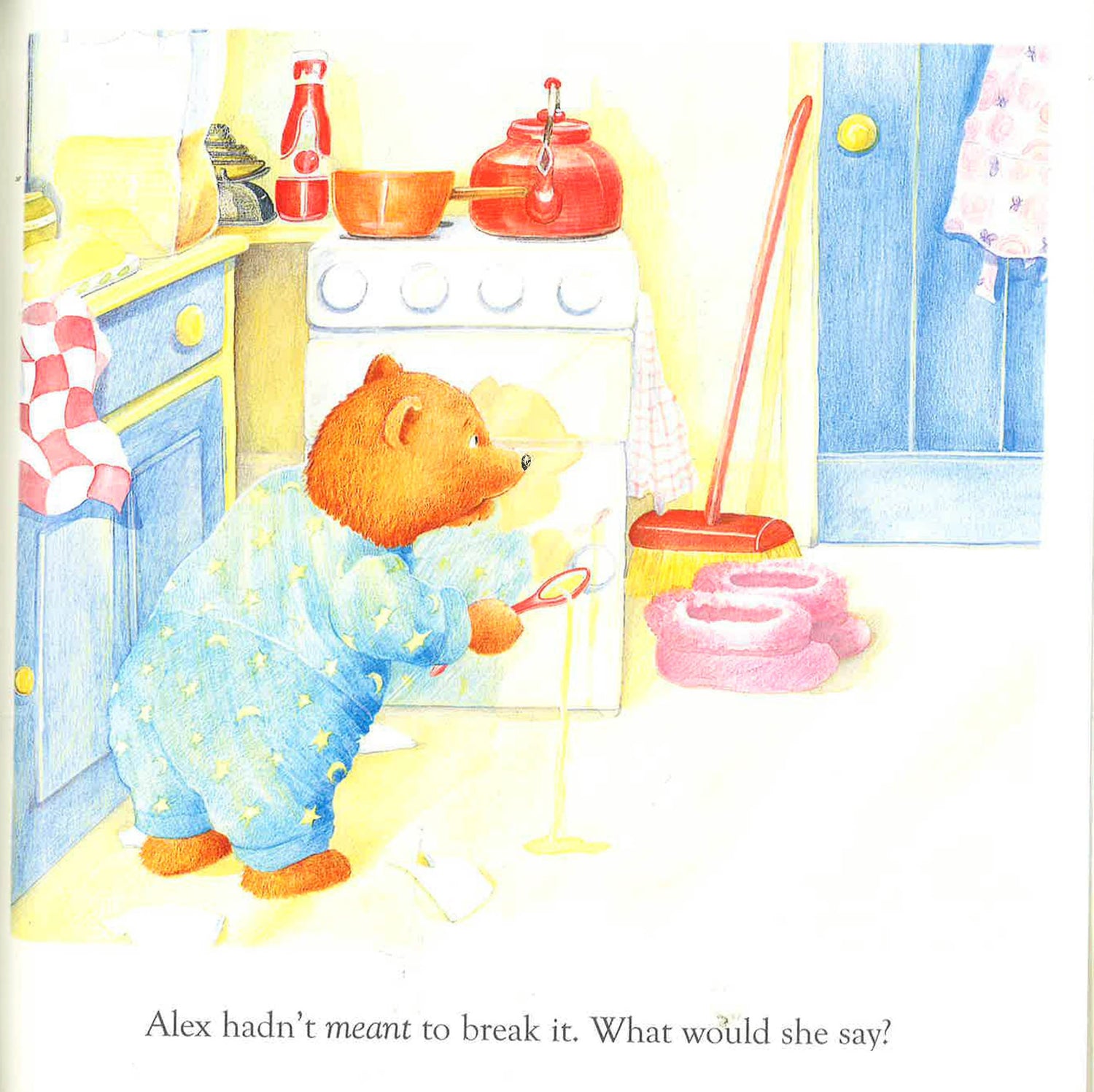 Alex's mother says that she will always love him, no matter what. Alex still isn't sure. He doesn't want to get into too much trouble for the broken honey bowl!