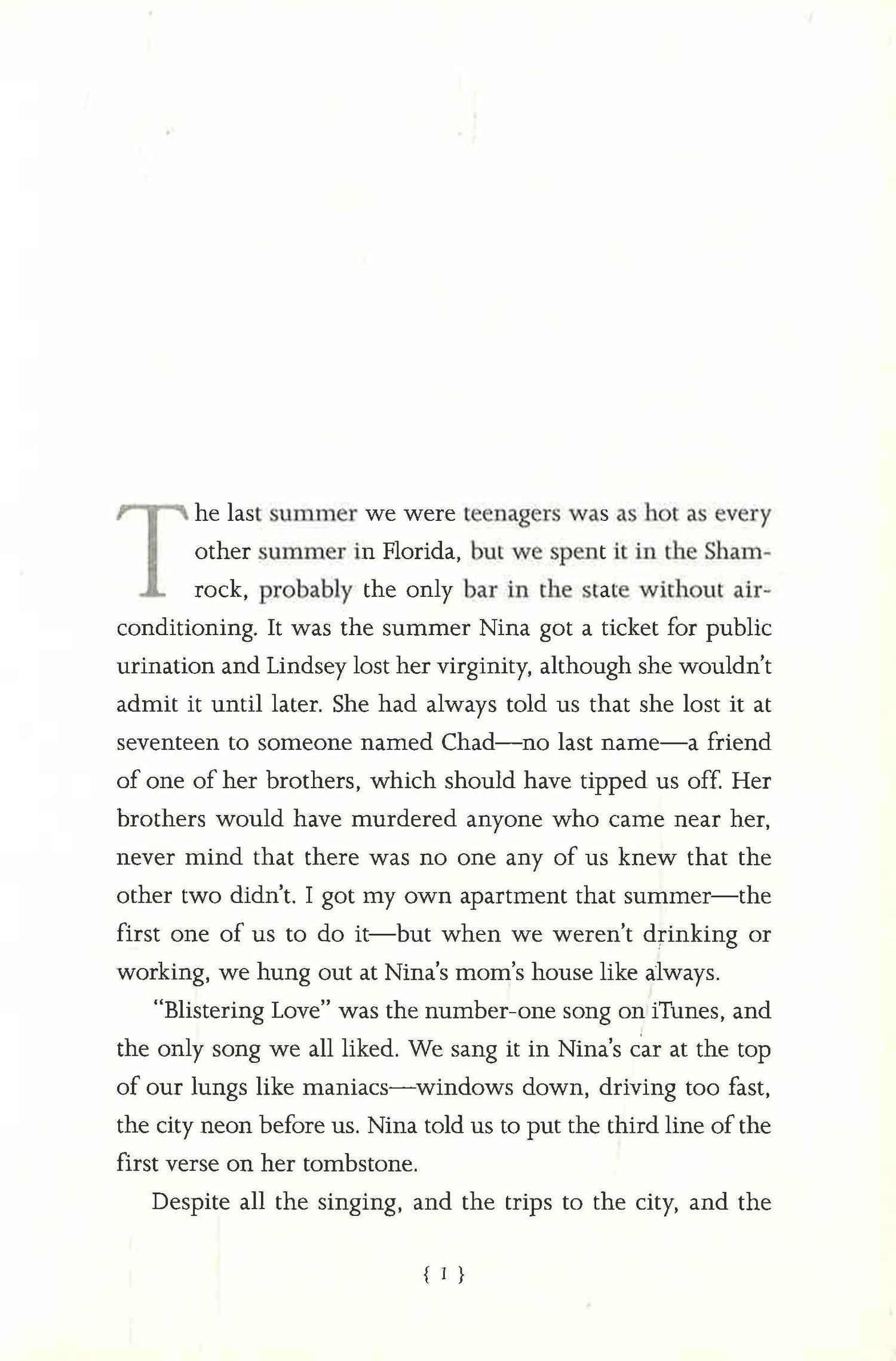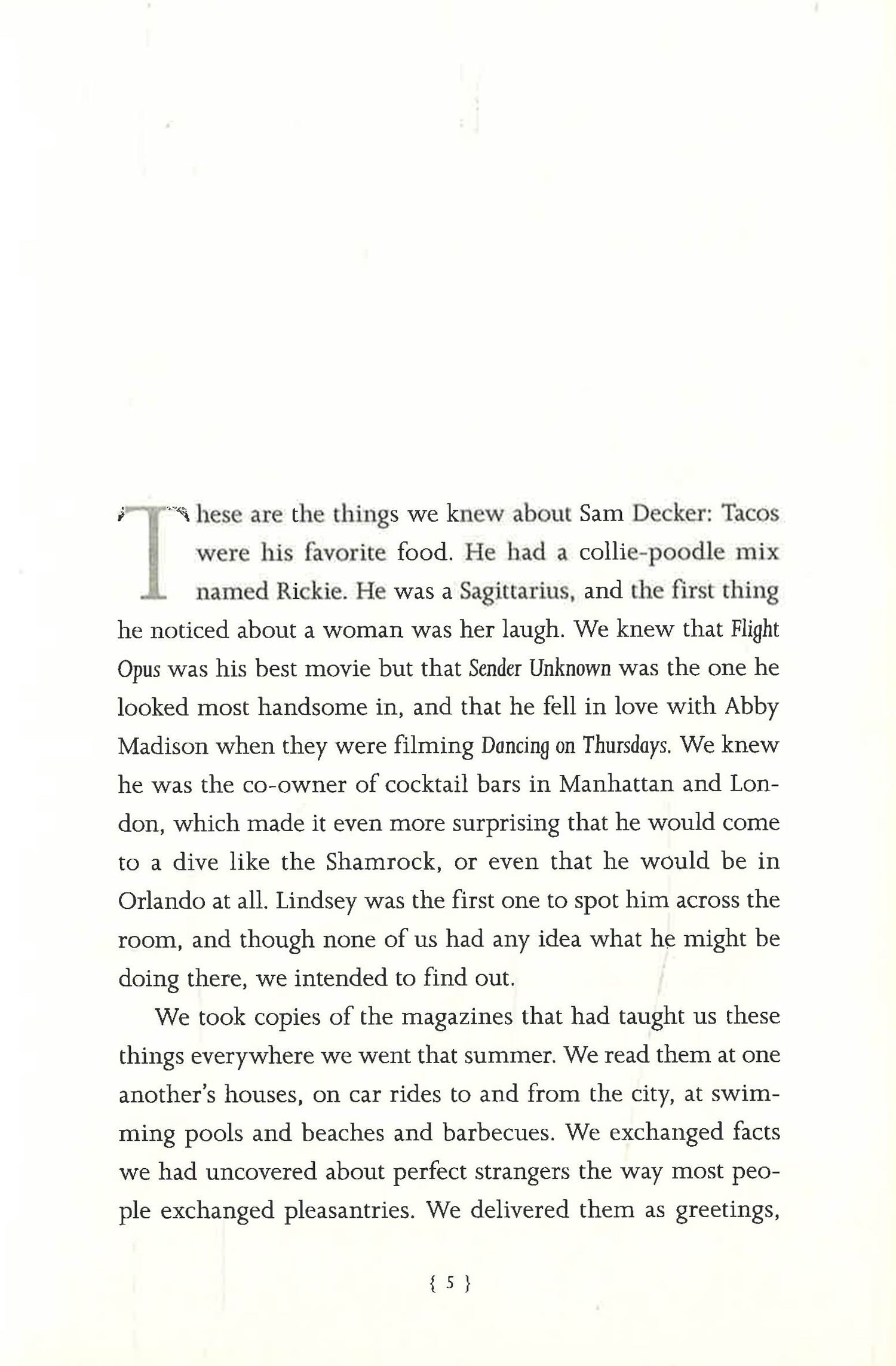 Maggie, Lindsey, and Nina have been friends for most of their lives. The girls grew up together in a dead-end Florida town on the outskirts of Orlando, and the love and loyalty they have for one another have been their only constants. Now nineteen and restless, the girls spend empty summer days bouncing between unfulfilling jobs, the beach, and their favorite local bar, The Shamrock. It s there that a chance encounter with a movie star on the last night of his life changes everything.