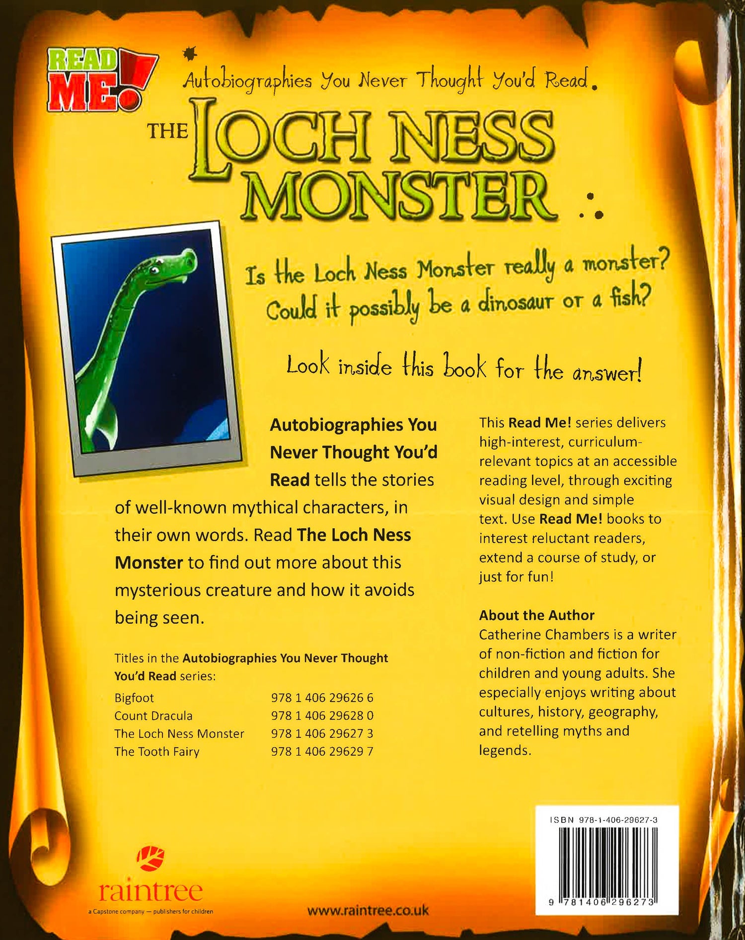 Each book in this series presents a fun "autobiography" of a popular mythical character. Amusingly illustrated and with simple levelled text, the books will be sure to hook in reluctant readers. The autobiographical style and text in the first person will also make the books work well as example of Common Core genres and text types.Each book in this series presents a fun "autobiography" of a popular mythical character. Amusingly illustrated and with simple levelled text, the books will be sure to hook in reluctant readers. The autobiographical style and text in the first person will also make the books work well as example of Common Core genres and text types. In this book, the Loch Ness Monster tells her story.