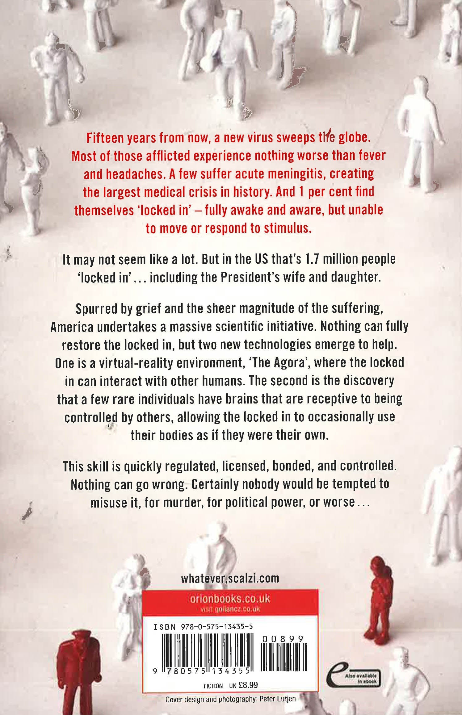 Spurred by grief and the sheer magnitude of the suffering, America undertakes a massive scientific initiative. Nothing can fully restore the locked in. But then two new technologies emerge. One is a virtual-reality environment, 'The Agora', where the locked-in can interact with other humans, whether locked-in ornot. The other is the discovery that a few rare individuals have brains that are receptive to being controlled by others, allowing those who are locked in to occasionally 'ride' these people and use their bodies as if they were their own.
