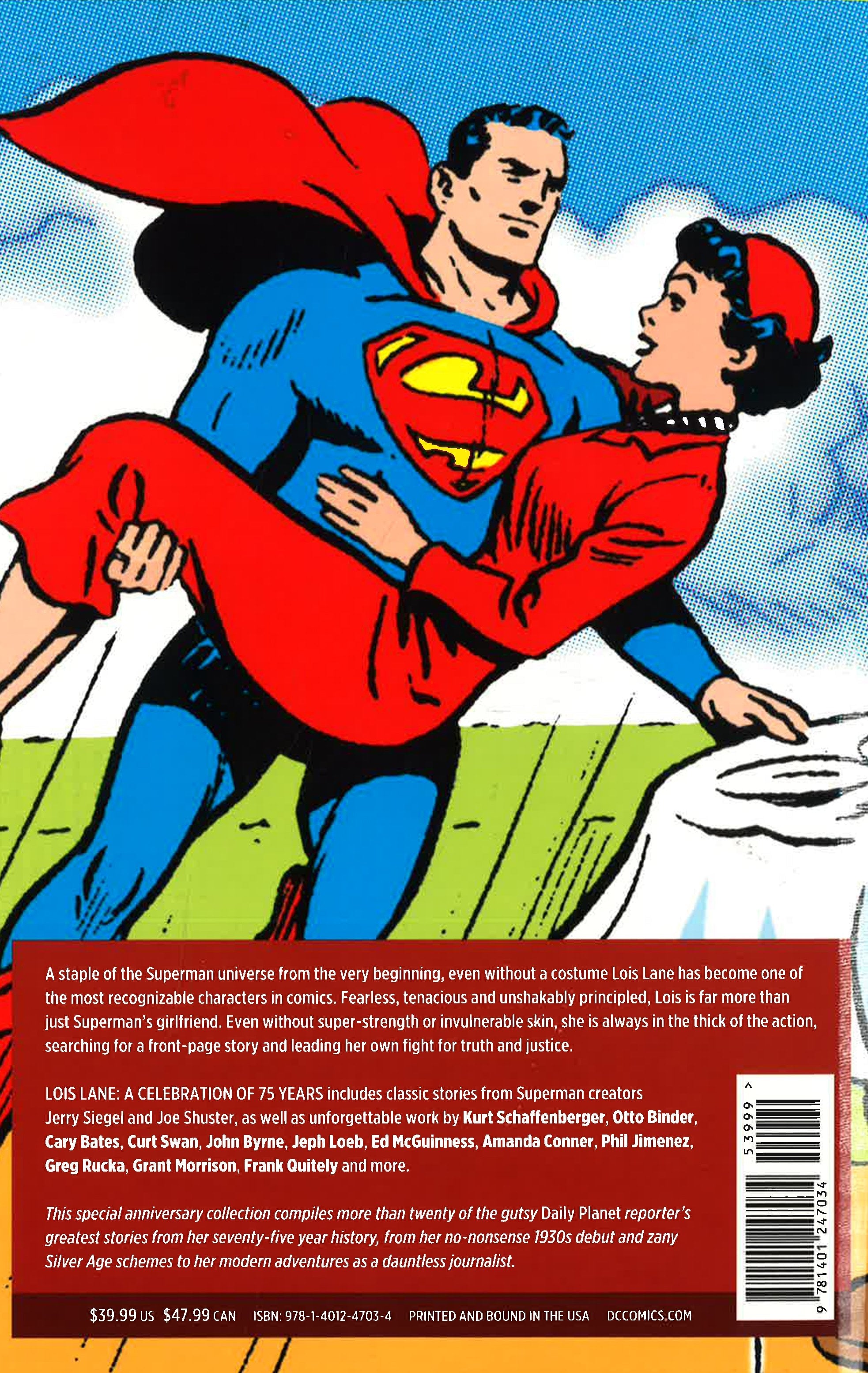 For seventy-five years, Lois Lane has been one of the most iconic characters in comics. In celebration of her contributions to the DC Universe and life as a pop-culture icon, DC Comics is proud to present this new hardcover anthology collecting some of Lois Lane's greatest stories.