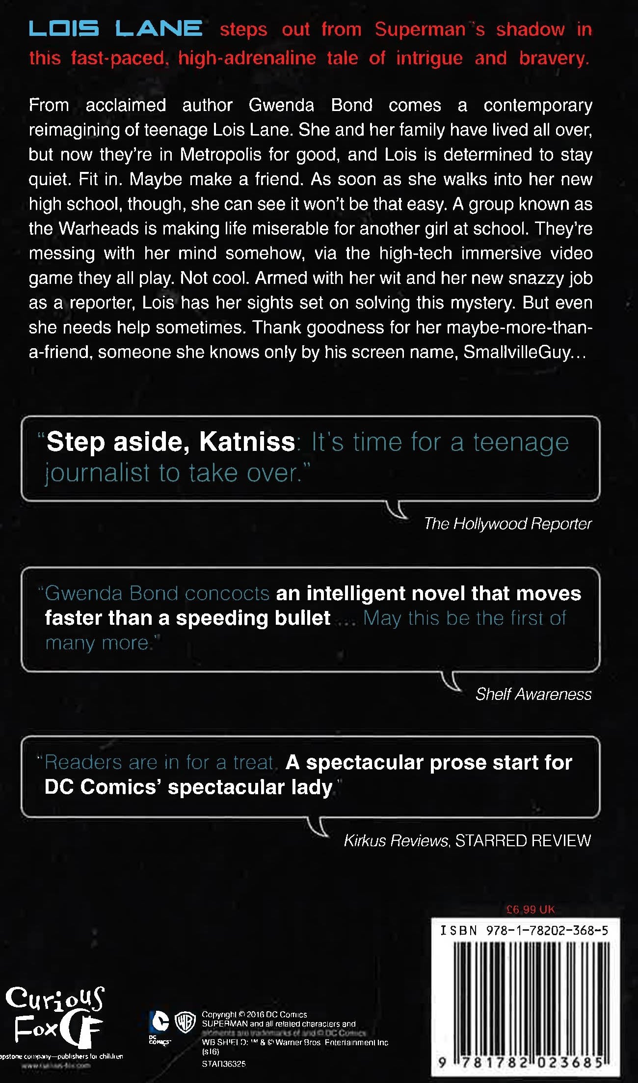 Lois Lane is starting a new life in Metropolis. Lois has lived all over - and seen all kinds of things. (Some of them defy explanation, like the near-disaster she witnessed in Kansas one night.) But now her family is putting down roots in the big city, and Lois is determined to fit in. Stay quiet. Keep out of trouble. As soon as she steps into her new high school, though, she can see it won't be that easy. A group known as the Warheads is making life miserable for another girl at school. They're messing with her mind somehow, via the high-tech immersive videogame they all play. Not cool. Armed with her wit and her new snazzy job as a reporter, Lois has her sights set on solving this mystery. But sometimes it's all a bit much. Thank goodness for her maybe-more-than-a friend, someone she knows only by his screenname, SmallvilleGuy...