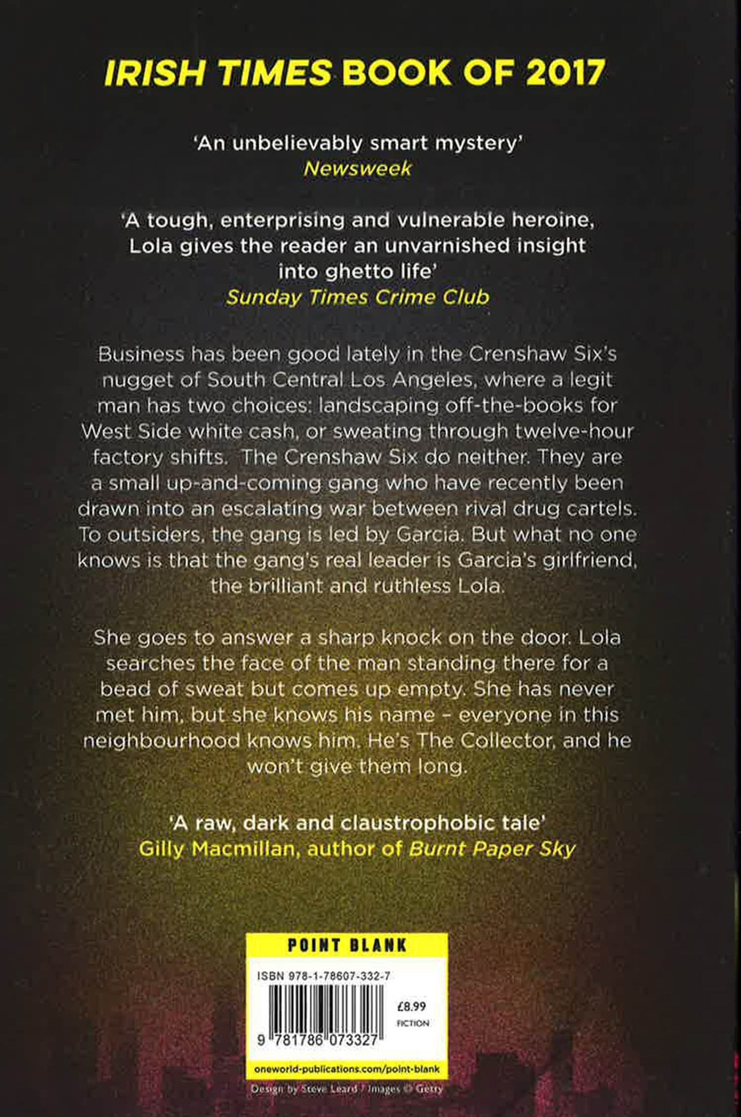 Suddenly: a sharp knock on the front door, probably a cop. Lola goes to answer it. The man standing there is Mexican, not Mexican-American, like everybody else here. Lola searches his face for a bead of sweat but comes up empty. She has never met him, but she knows his name. Everyone in this neighbourhood knows his name. They call him The Collector, and he won't give them long.