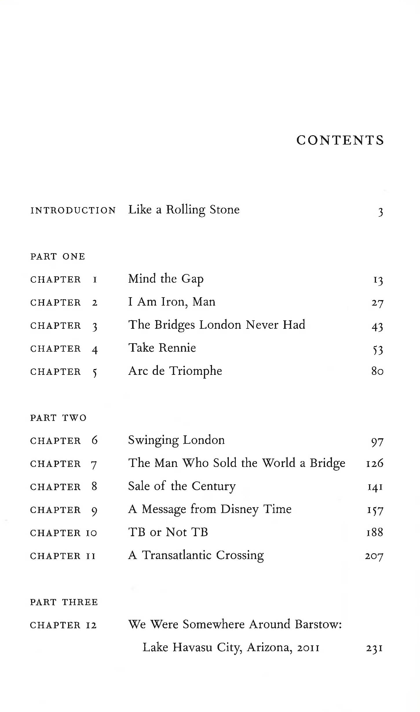 In 1968 the world's largest antique went to America. But how do you transport a 130-year-old bridge 3,000 miles? And why did Robert P. McCulloch, a multimillionaire oil baron and chainsaw-manufacturing king, buy it? Why did he ship it to a waterless patch of the Arizonan desert? Did he even get the right bridge? To answer these questions, it's necessary to meet a peculiar cast. It includes: Fleet Street shysters; Revolutionary Radicals; Frock-coated industrialists; Disneyland designers; Thames dockers; Guinness Book of Records officials; The odd Lord Mayor; Bridge-building priests; Gun-toting U.S. sheriffs; An Apache Indian or two. And a fraudster whose greatest trick was to convince the world he ever existed. Roll up, then, for the story of one of the strangest events in Anglo-American relations. Curious, clever and sharp, this is history to delight in.