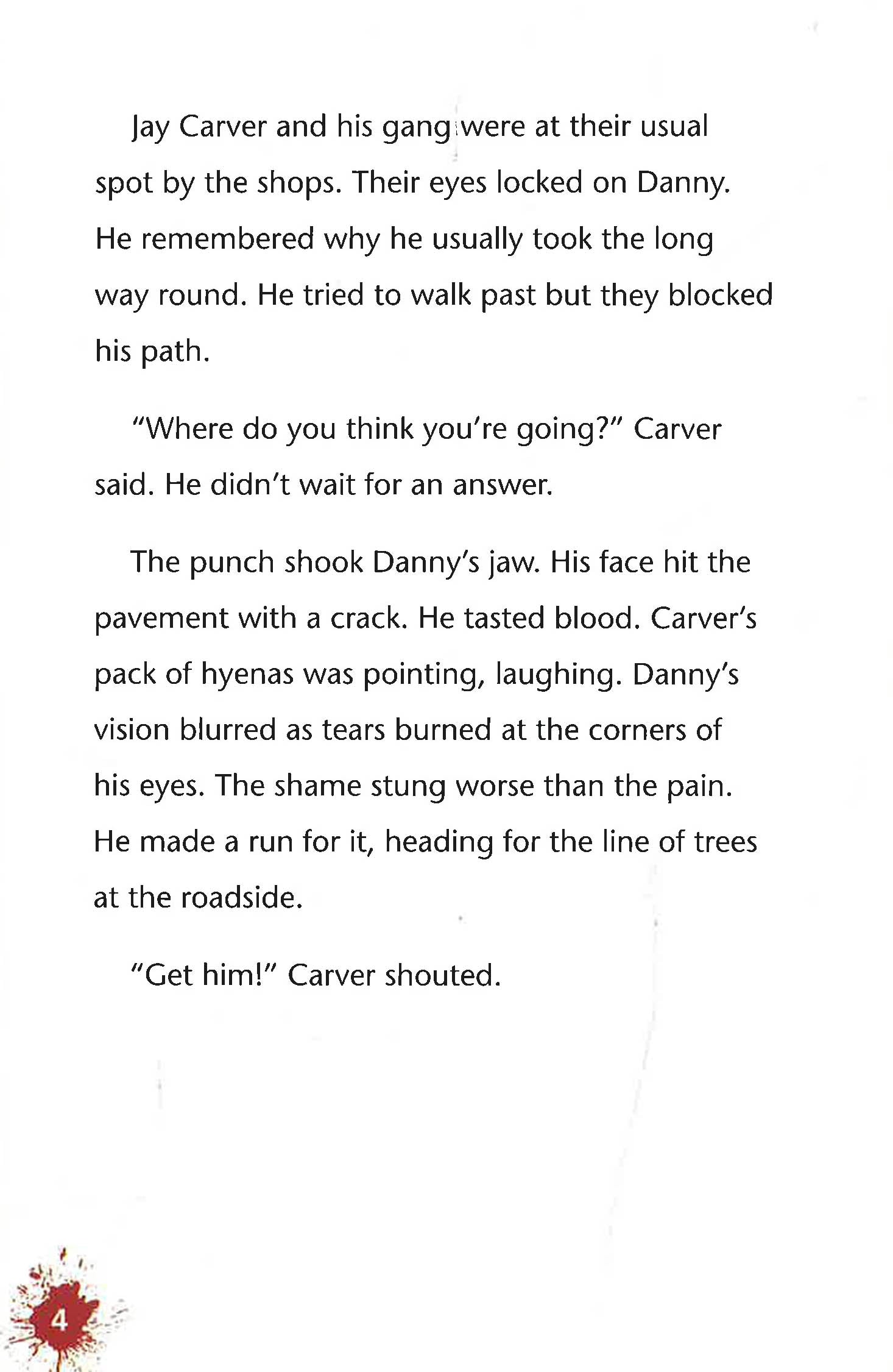 He saw it in flashes: a shadow of prickly fur, the gleam of teeth. The sight of it snatched the breath from Danny's lungs. He knew what the creature was. He thought they had died out in Britain hundreds of years ago, but there was no doubt about it. He was looking into the yellow eyes of a wolf. People have been going missing in the town. But Danny's got something else on his mind: how to avoid Carver and his gang. Running away from them into the dark woods beyond the estate, he meets something even more frightening...