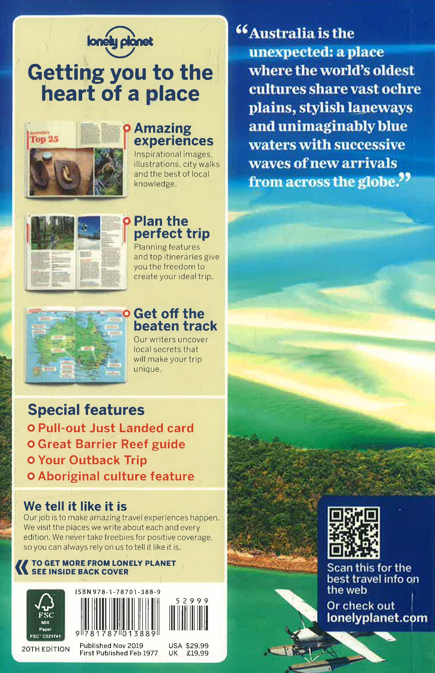 The Perfect Choice: Lonely Planet's Australia is our most comprehensive guide to Australia, and is perfect for discovering both popular and off-the-beaten-path experiences.