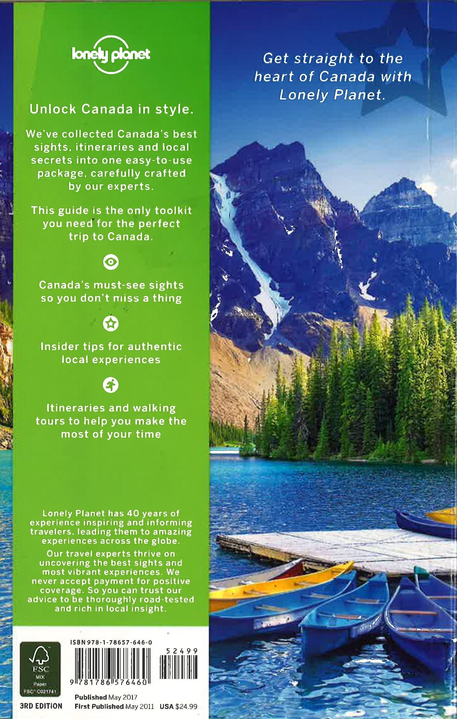 Full-color maps and images throughout Highlights and itineraries help you tailor your trip to your personal needs and interests Insider tips to save time and money and get around like a local, avoiding crowds and trouble spots Essential info at your fingertips - hours of operation, phone numbers, websites, transit tips, prices Honest reviews for all budgets - eating, sleeping, sight-seeing, going out, shopping, hidden gems that most guidebooks miss Cultural insights give you a richer, more rewarding travel experience - history, art, literature, cinema, music, politics, landscapes, wildlife, cuisine, wine, spectator sports Free, convenient pull-out Vancouver map (included in print version), plus over 36 color maps Covers Vancouver, Whistler, Banff National Park, Jasper National Park, the Canadian Rockies, Toronto, Niagara Falls, Ontario, Ottawa, Montreal, Quebec, Nova Scotia, Prince Edward Island, and more