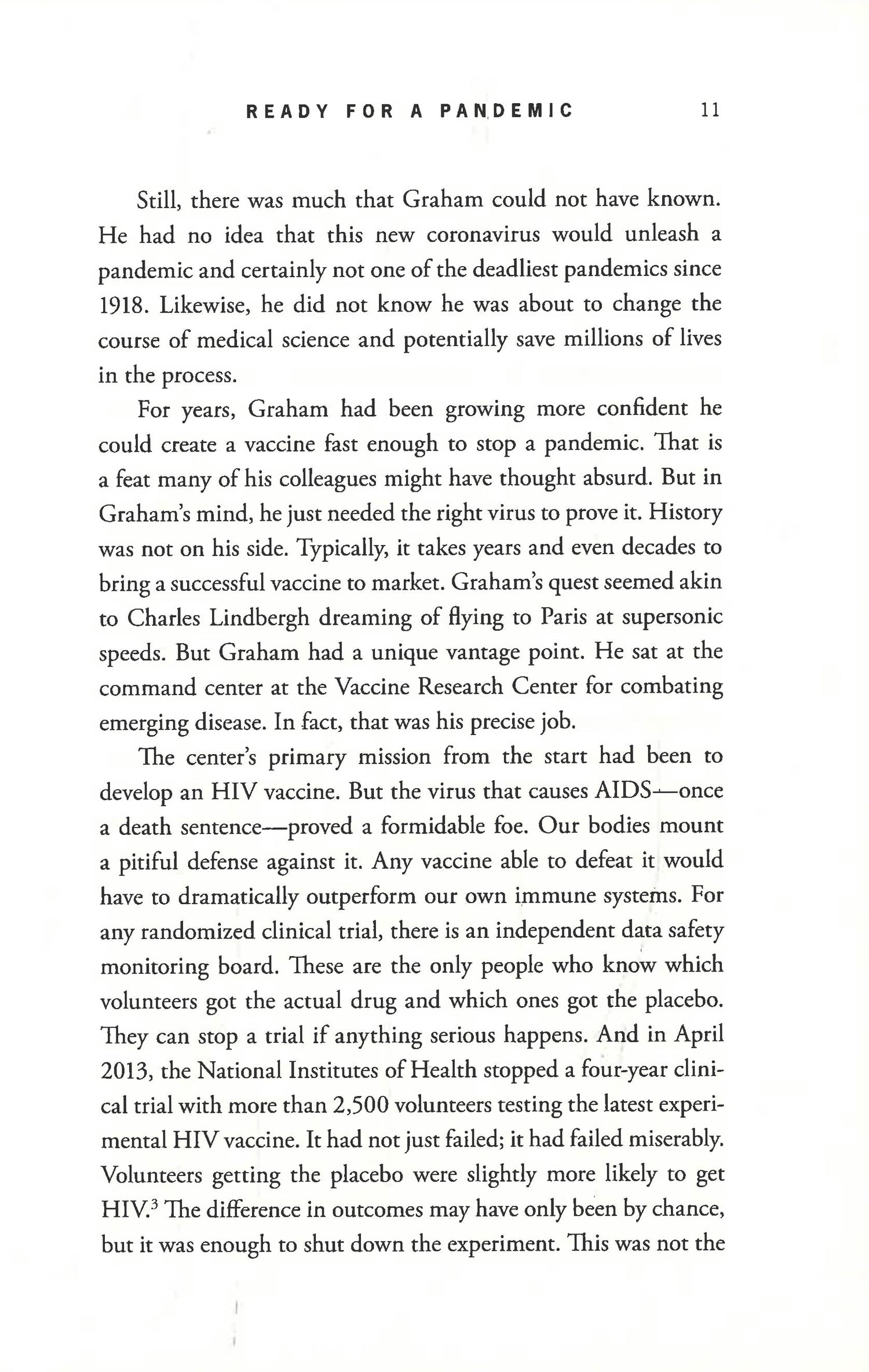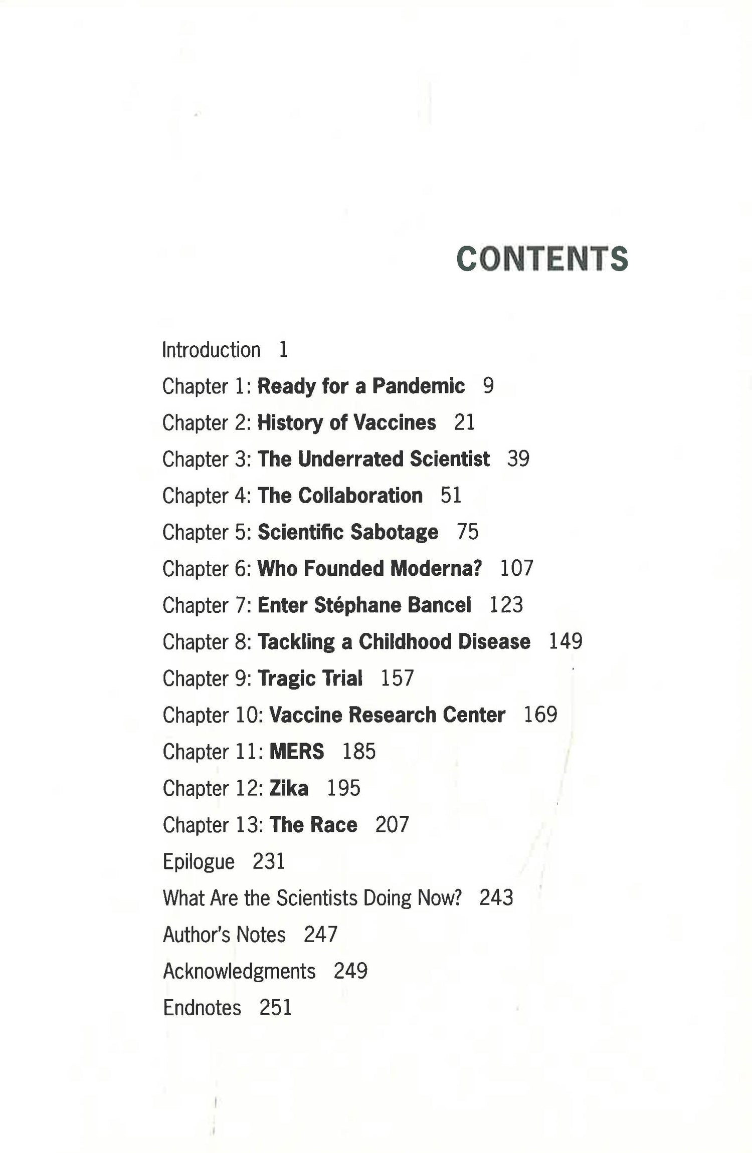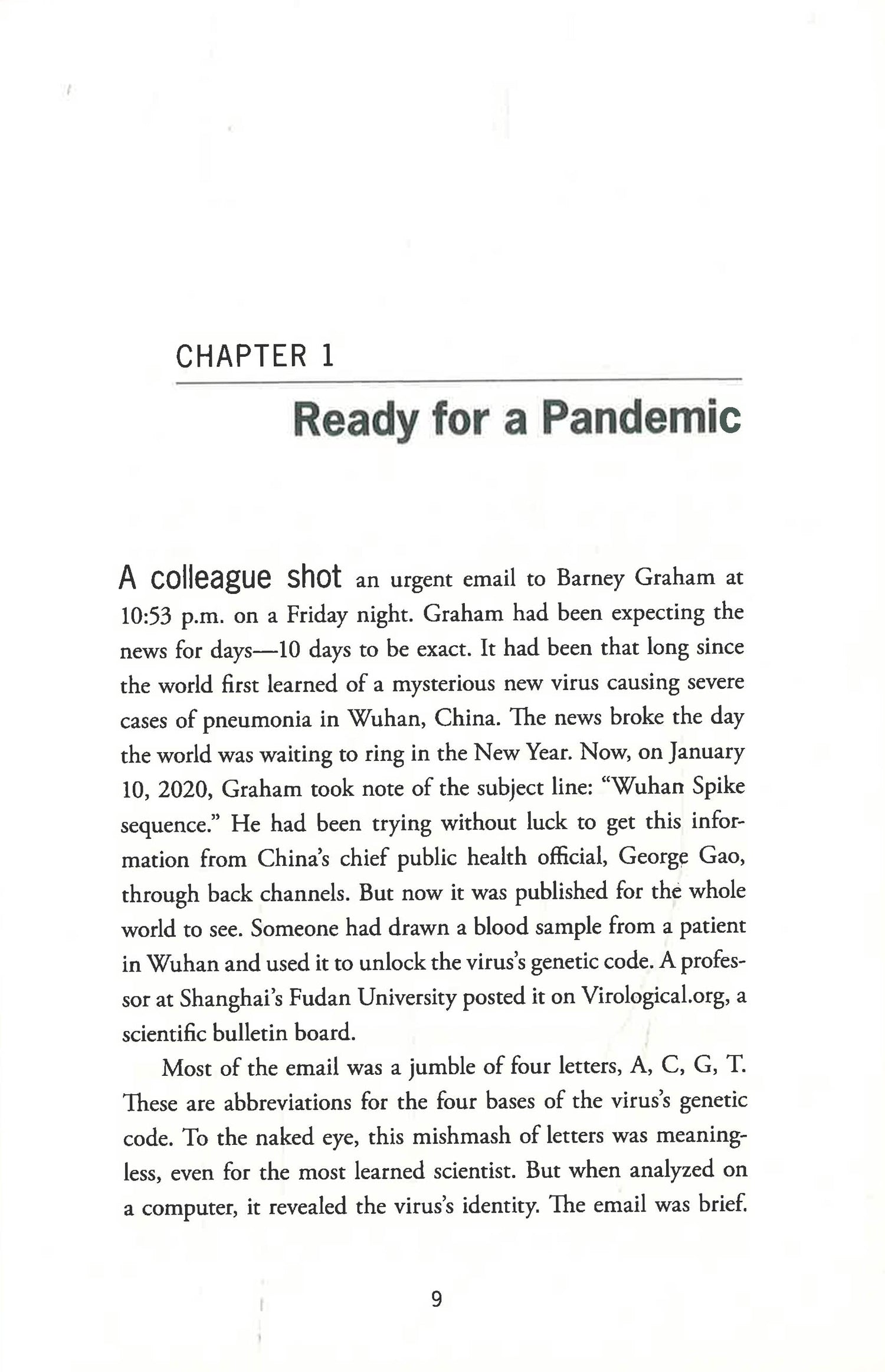 The story really begins in the 1990s, with a series of discoveries that were timed perfectly to prepare us for the worst pandemic since 1918. Readers will meet Katalin Karikó, who made it possible to use messenger RNA in vaccines but struggled for years just to hang on to her job. There's also Derrick Rossi, who leveraged Karikó's work to found Moderna but was eventually expelled from his company. And then there's Barney Graham at the National Institutes of Health, who had a career-long obsession with solving the riddle of why two toddlers died in a vaccine trial in 1966, a tragedy that ultimately led to a critical breakthrough in vaccine science.