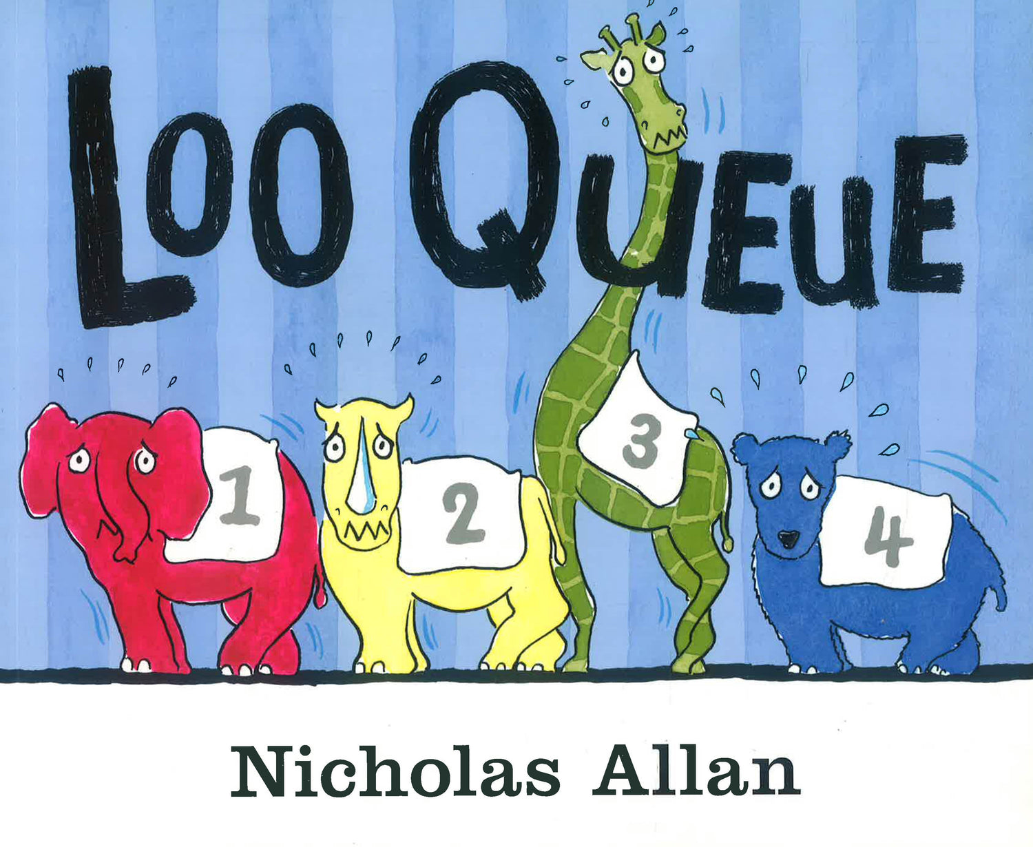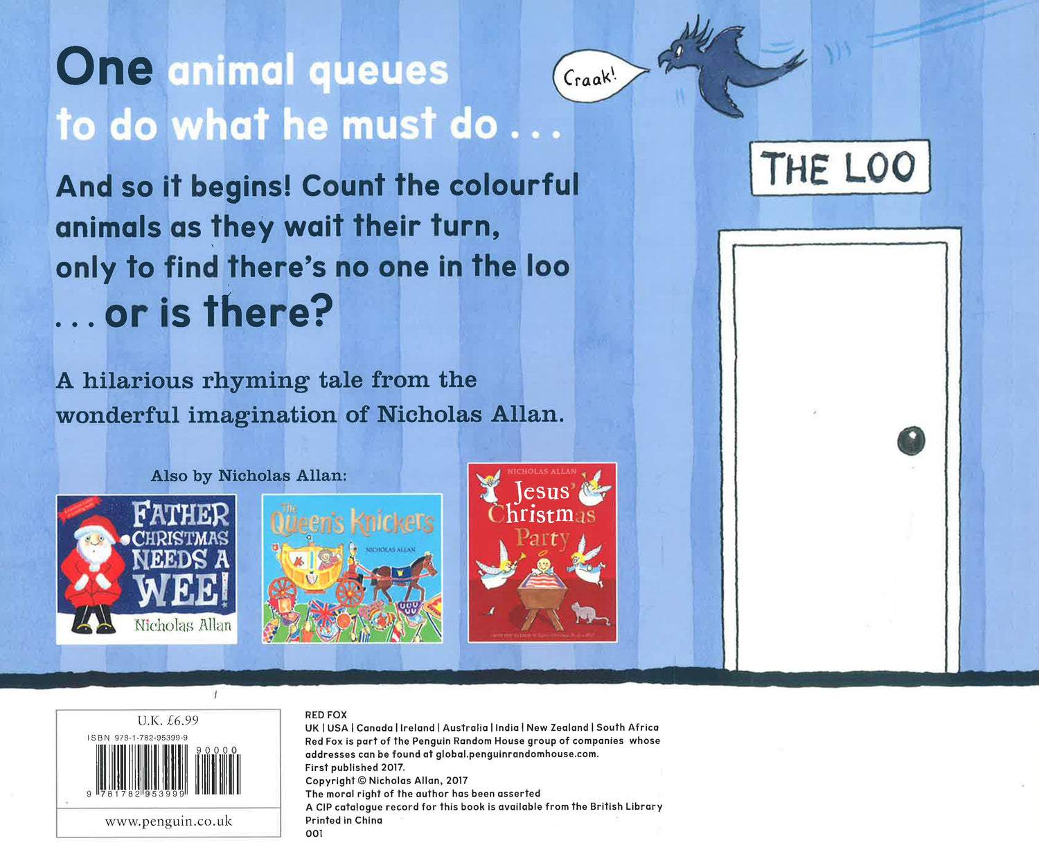 In this riotous rhyme from Nicholas Allan, the queue for the loo gets very long indeed, as a series of multi-coloured animals impatiently join!