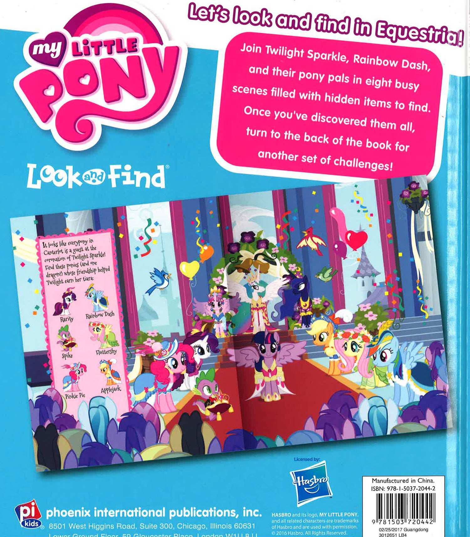 My Little Pony Look and Find Book: Join Twilight Sparkle, Rainbow Dash, and their pony pals in eight busy scenes filled with hidden items to find. Once you've discovered them all, turn to the back of the book for another set of challenges!