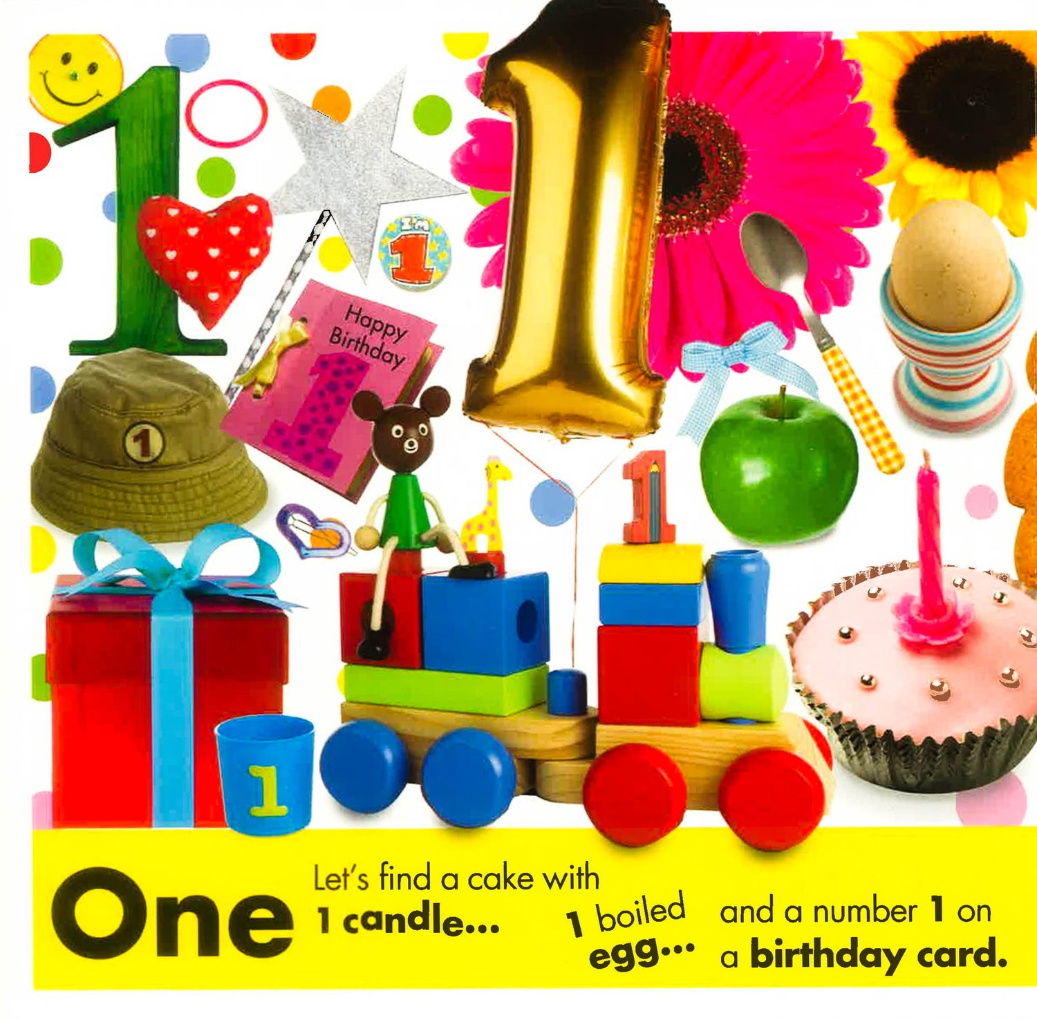 Let's look for a cake with 1 candle.Let's point to a number 4 on a truck.Let's find 10 pink pages. Packed with pictures, this fun-filled number book is perfect for children and adults to share together.Just look and find!