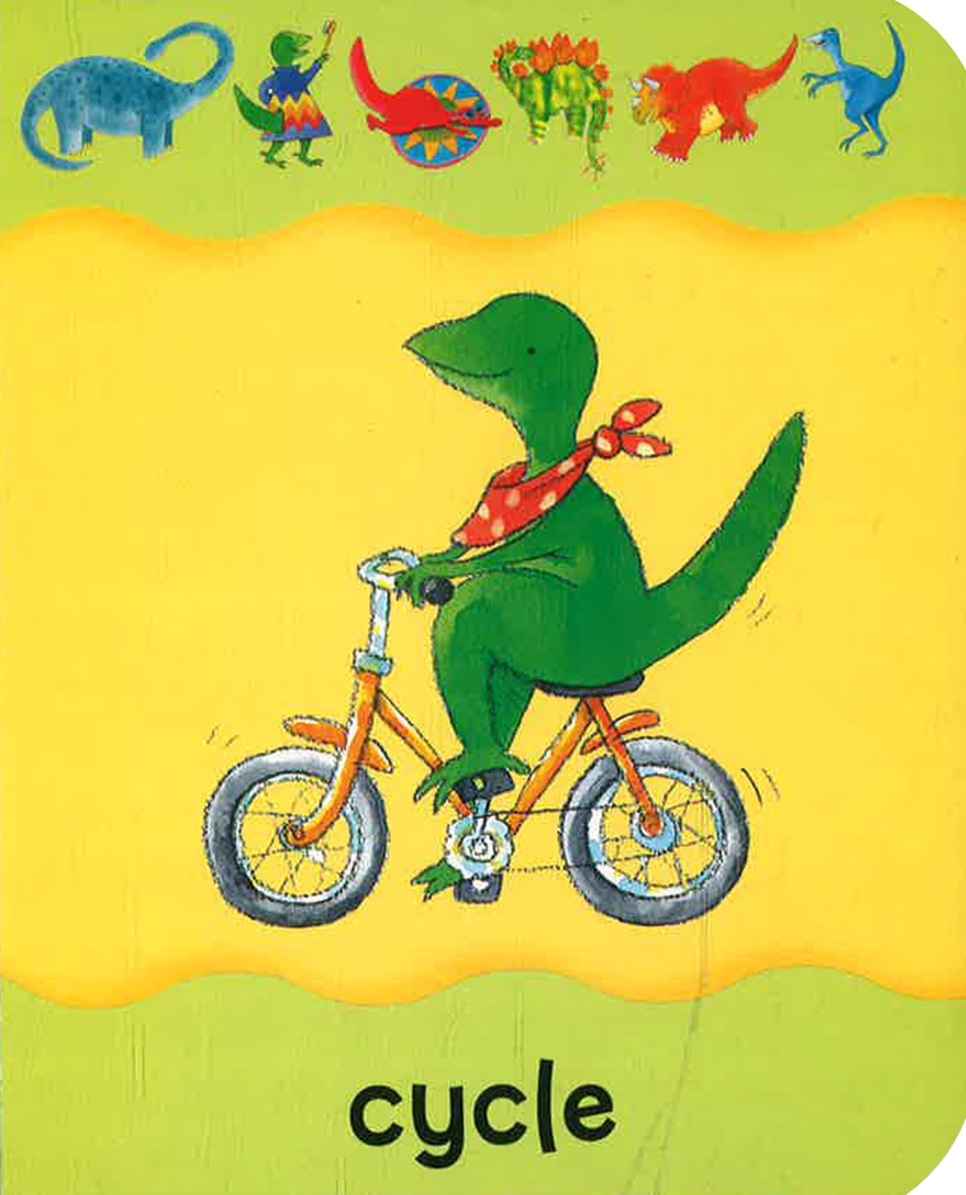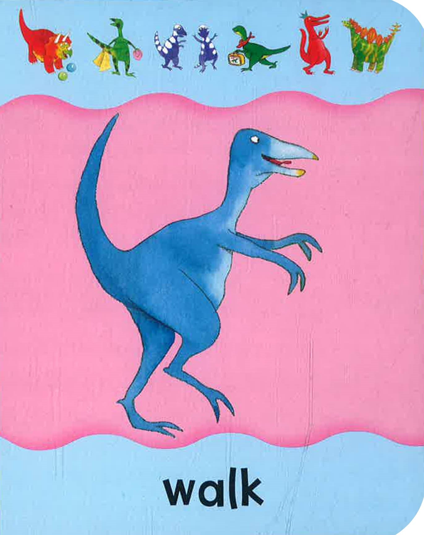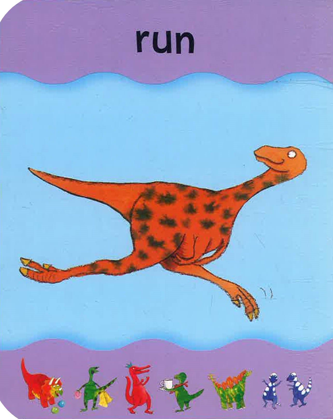 Follow Little Dino and all his prehistoric pals as they help you to understand action words in this chunky, soft-to-touch boardbook. This interactive book has been specially designed for young children and adults to enjoy together, with a wipe-clean cover and sturdy board pages. Each action is demonstrated by Dino and his friends, including related words such as eat and drink, jump and walk, and push and pull. You can learn the words, repeat the actions, and have fun! There's no need to be afraid! Little Dino, the young Tyrannosaurus, isn't at all scary, unlike the dinosaurs you may have seen in the movies. His friends are very nice, too - including a smiling Pterosaur, a bright red Triceratops and a blue Brontosaurus. There's no need to be afraid of learning new words, either, because Dino and his chums are here to help you by showing you what they mean. Some of the words are related, such as throw and kick or hold and carry. Some of them are just for fun, such as fly and sit or paint and climb. Happy reading!show more